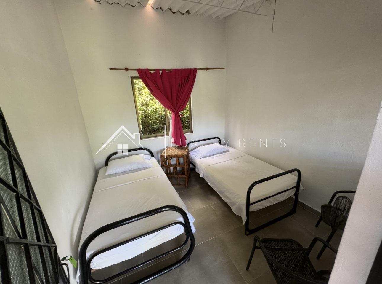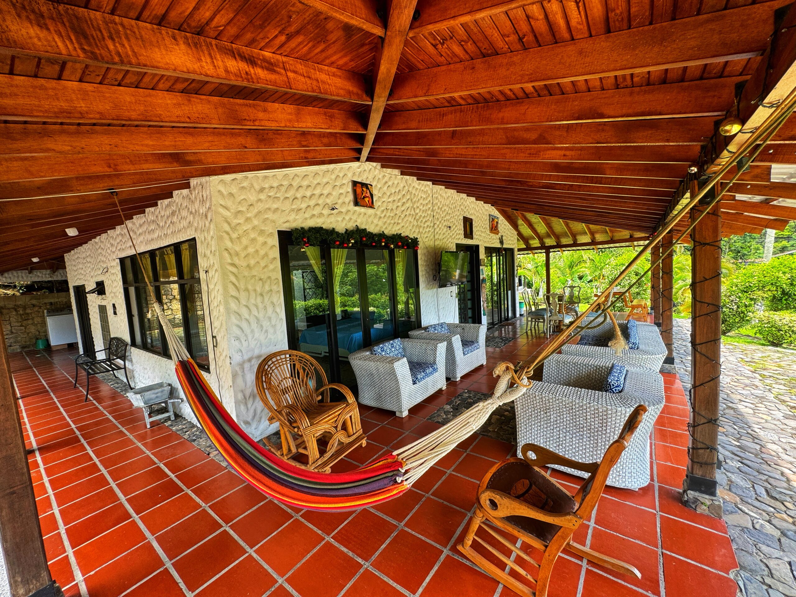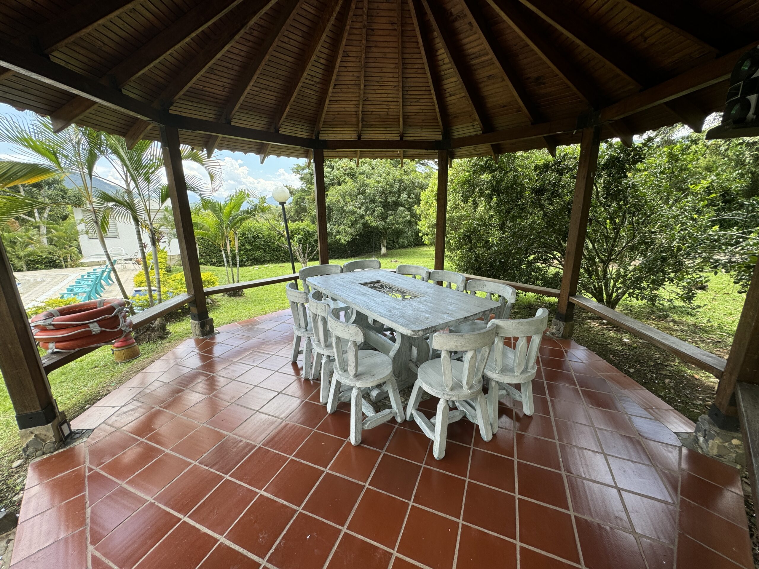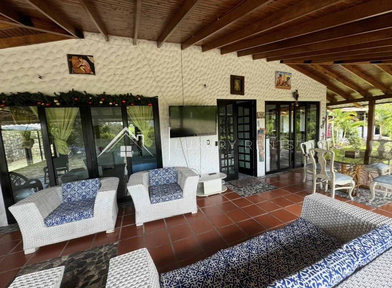 Cuenta con amenidades como sala-Comedor, cocina completamente dotada, baño social, amplias zonas verdes, parrilla y Bbq, bolirrana, mesa de ping pong, juegos de mesa, smartv, wifi, jacuzzi, piscina, parqueaderos