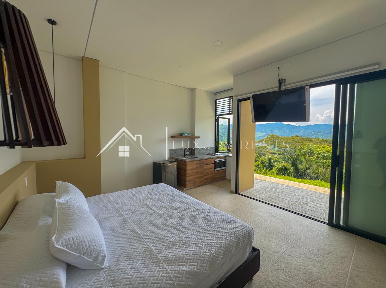 Habitación 1 : cama King, Tv, balcón, sofá cama, walking clóset, baño privado amplio