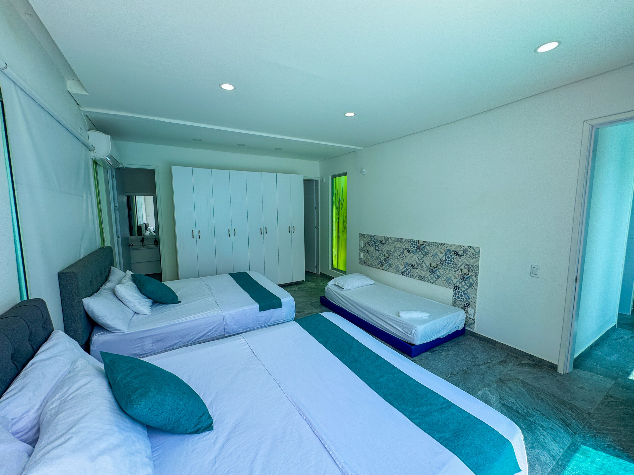 Habitación 1: dos camas dobles, una cama sencilla, 2 baños privados y aire acondicionado
