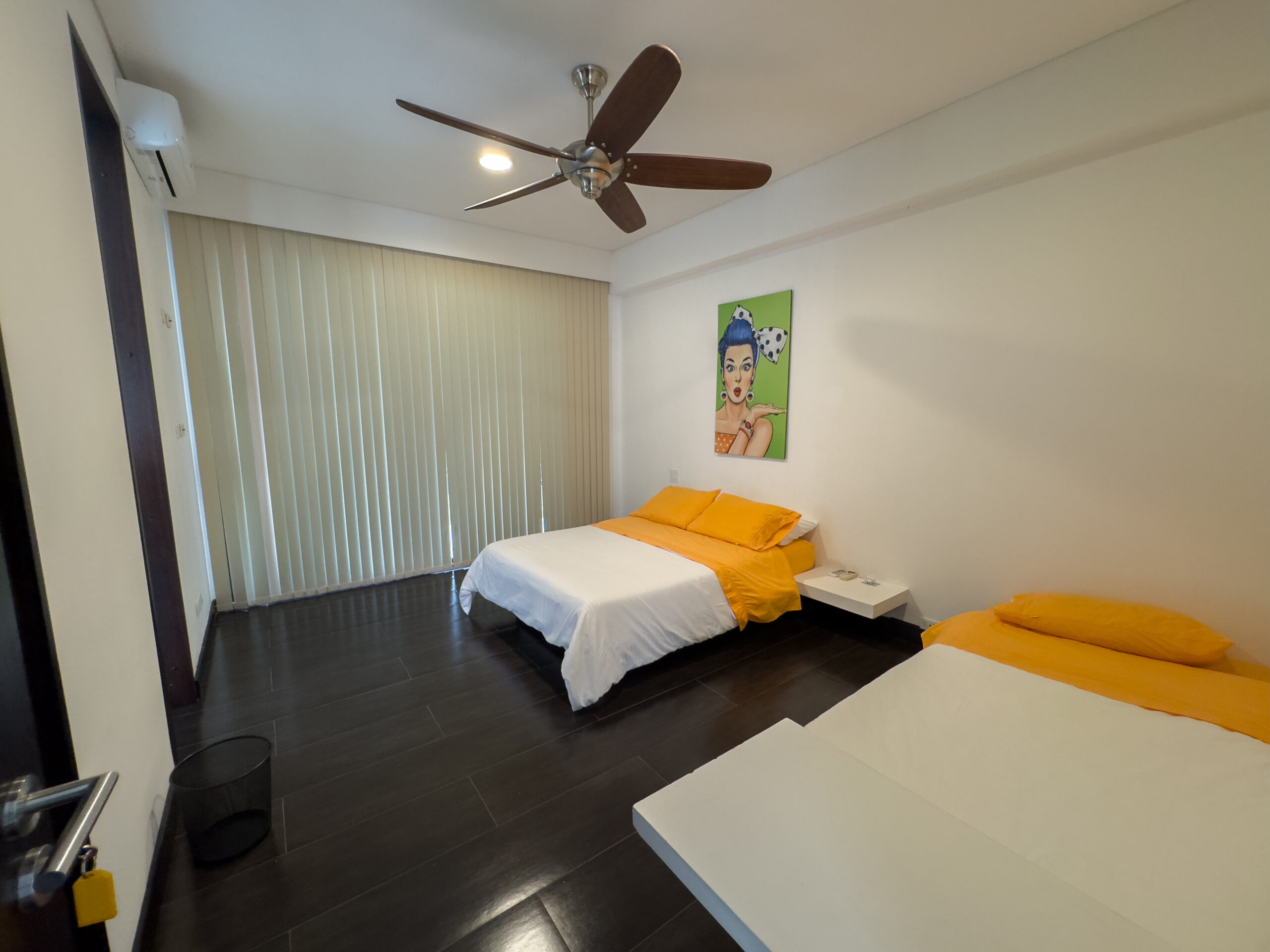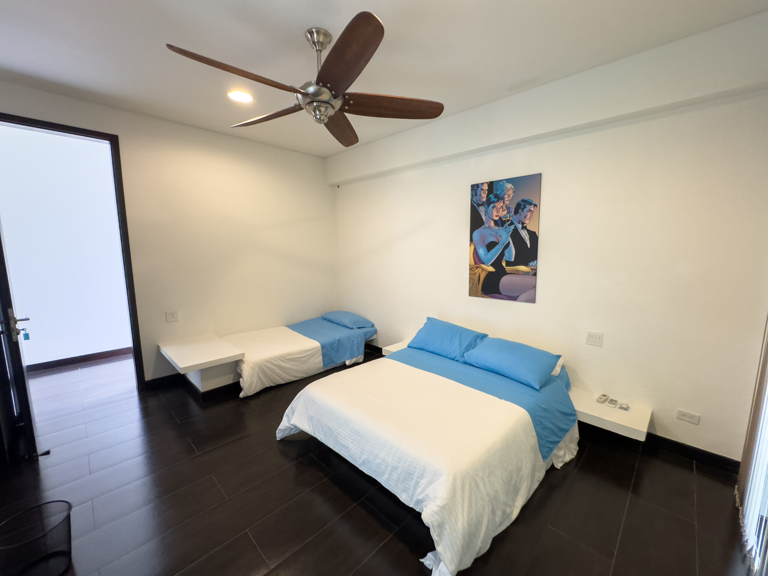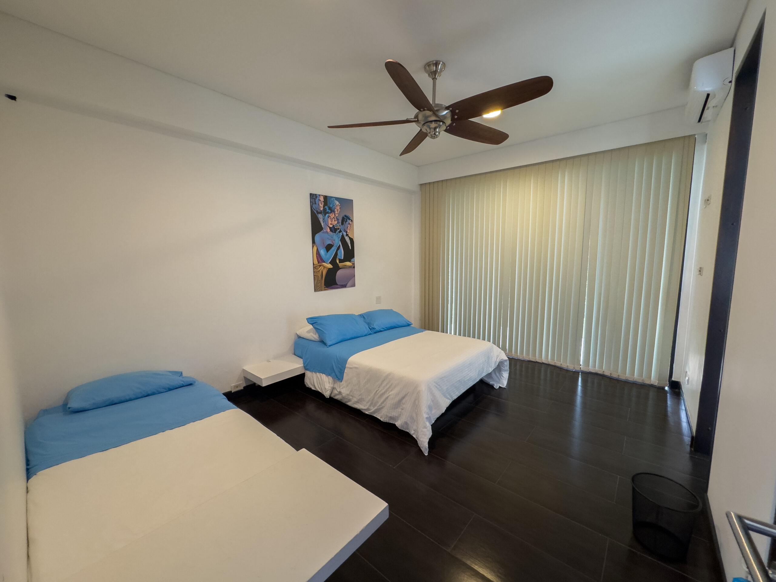 Habitación 3: cama doble, cama sencilla, baño privado con vestier, ventilador y aire acondicionado