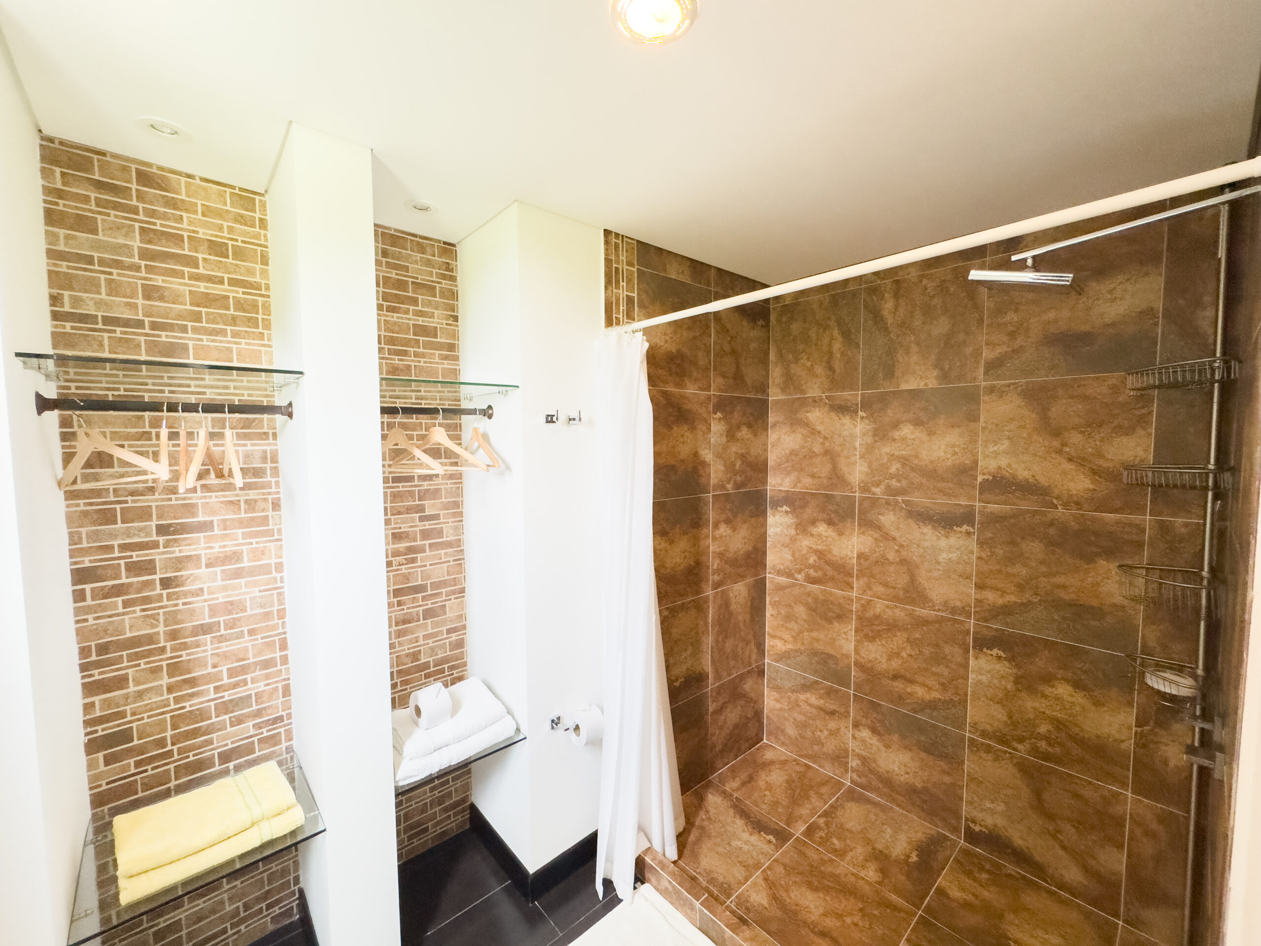 Habitación 5: cama doble, cama sencilla, amplio baño privado con vestier, ventilador, aire acondicionado y tv