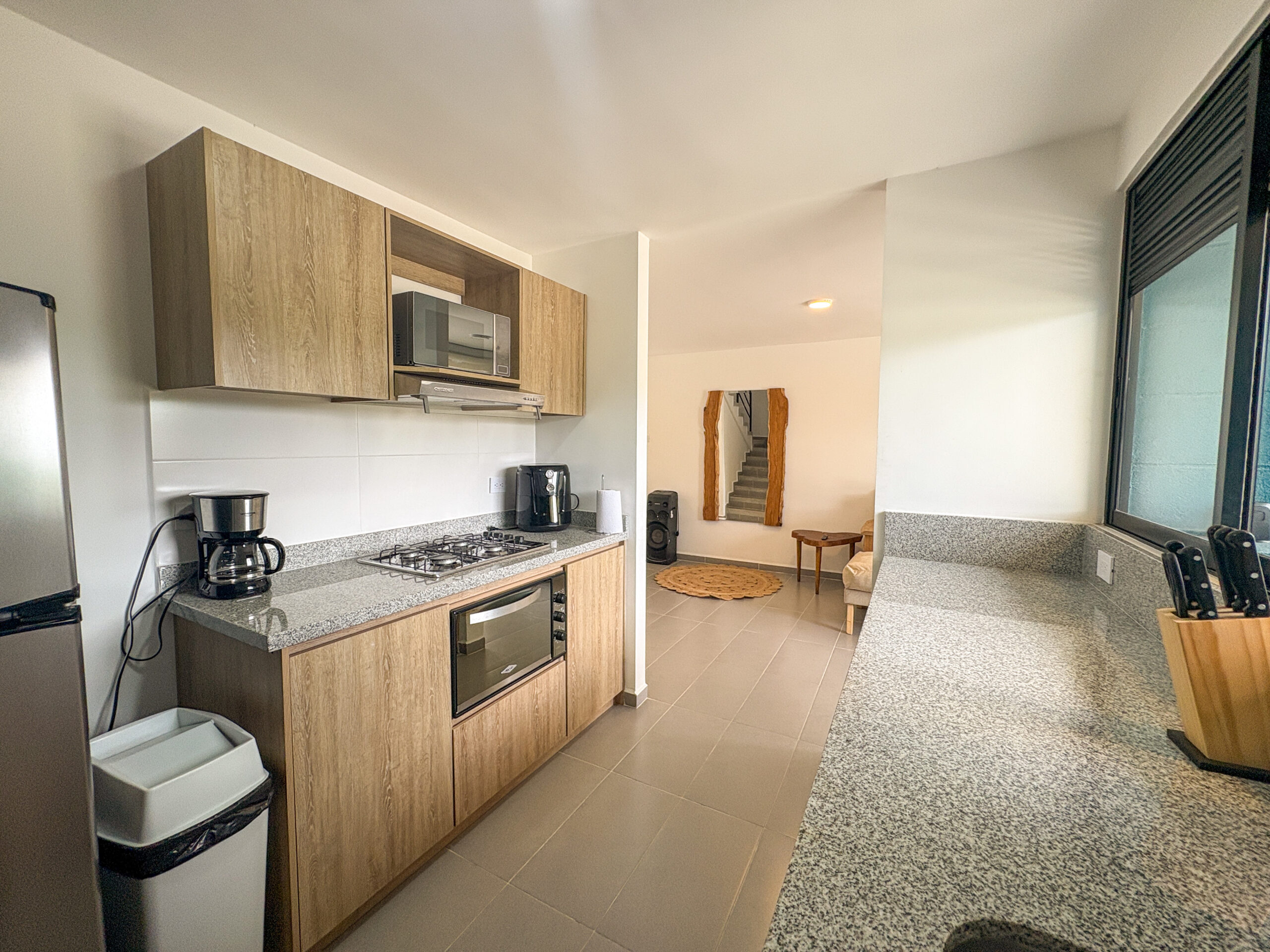 Cuenta con amenidades como sala-comedor, cocina completamente dotada, baño social, patio de ropas, cuarto de linos, parqueadero