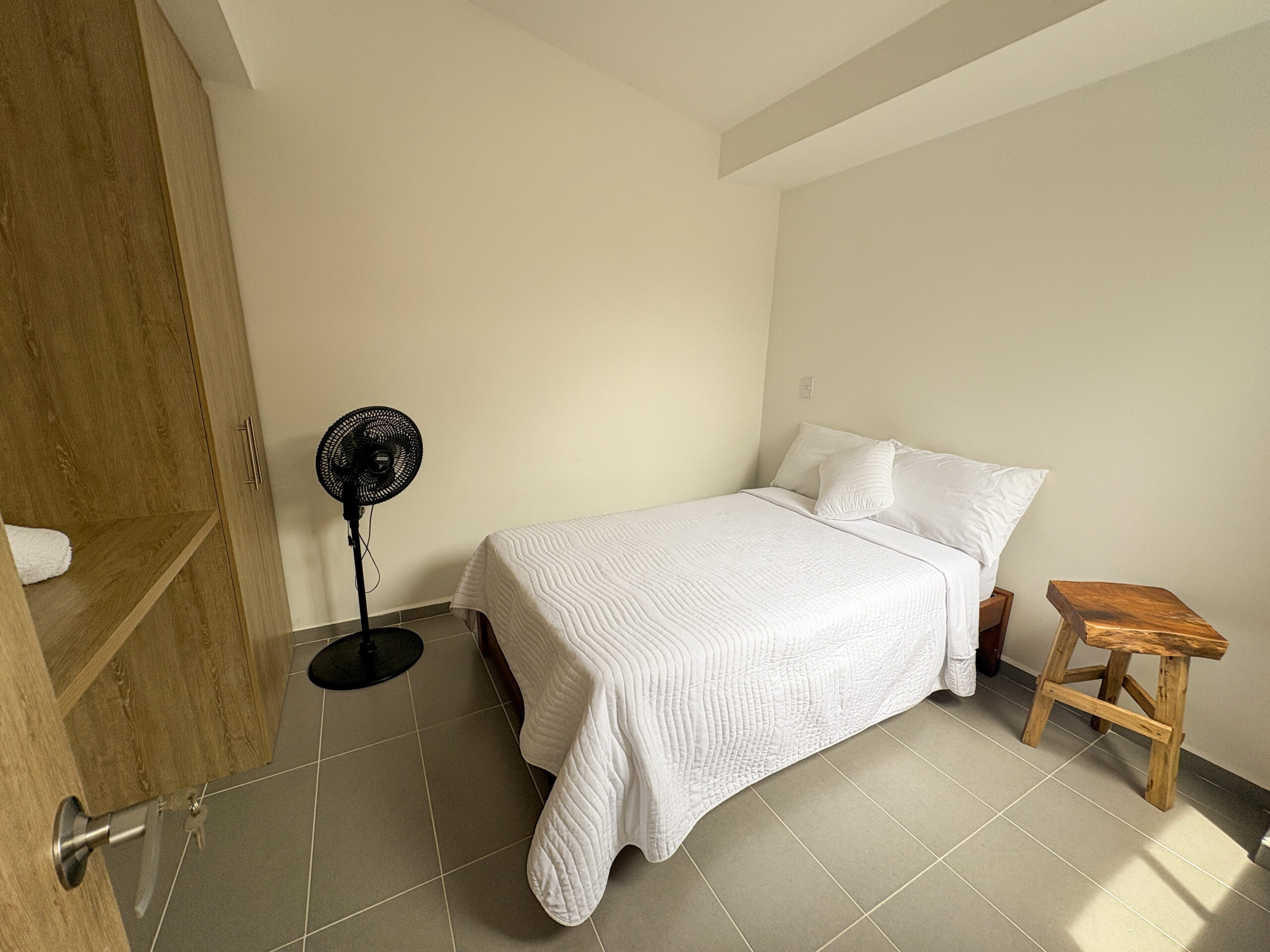 Habitación 3: cama semidoble, nido, ventilador, closet