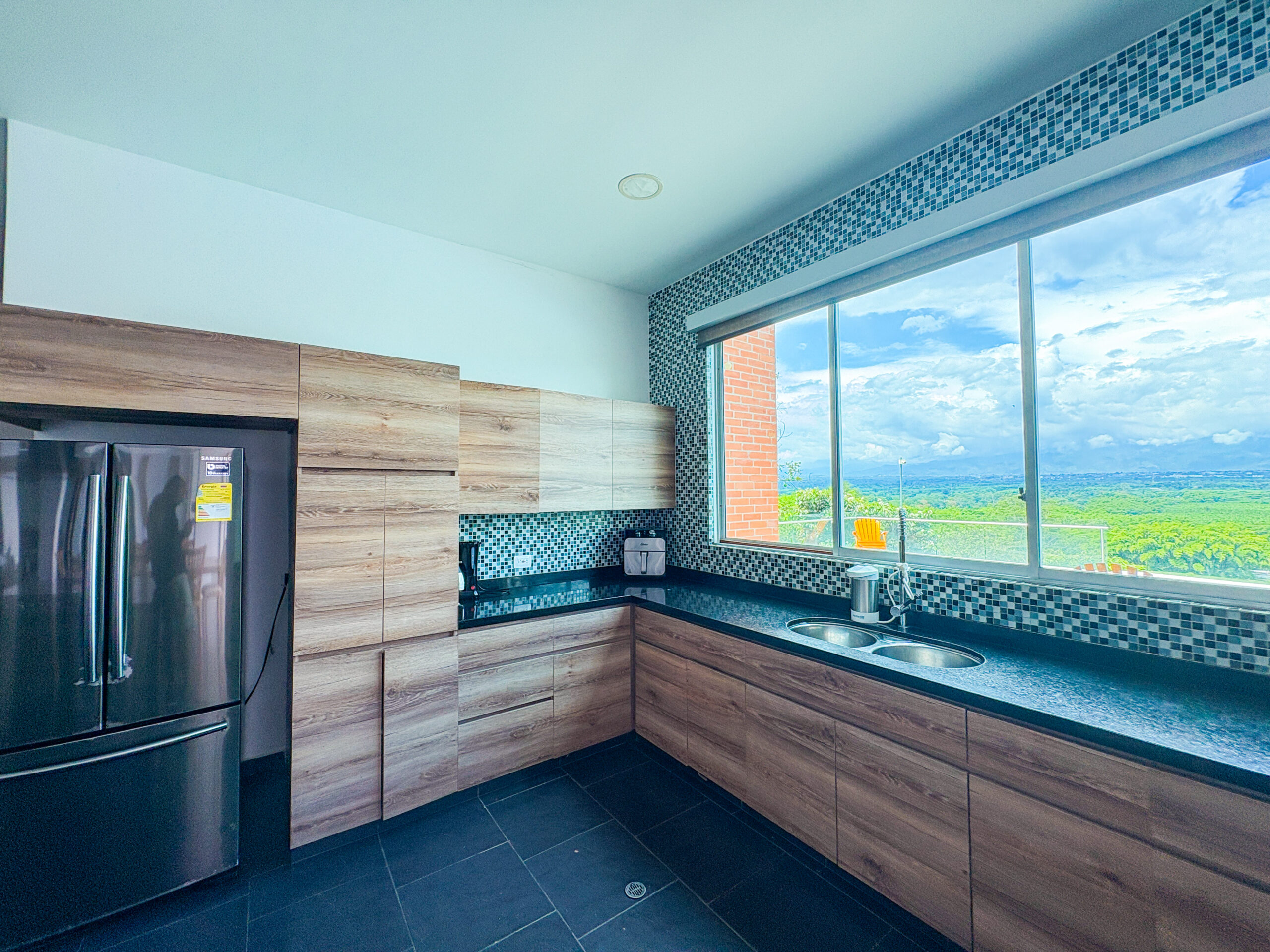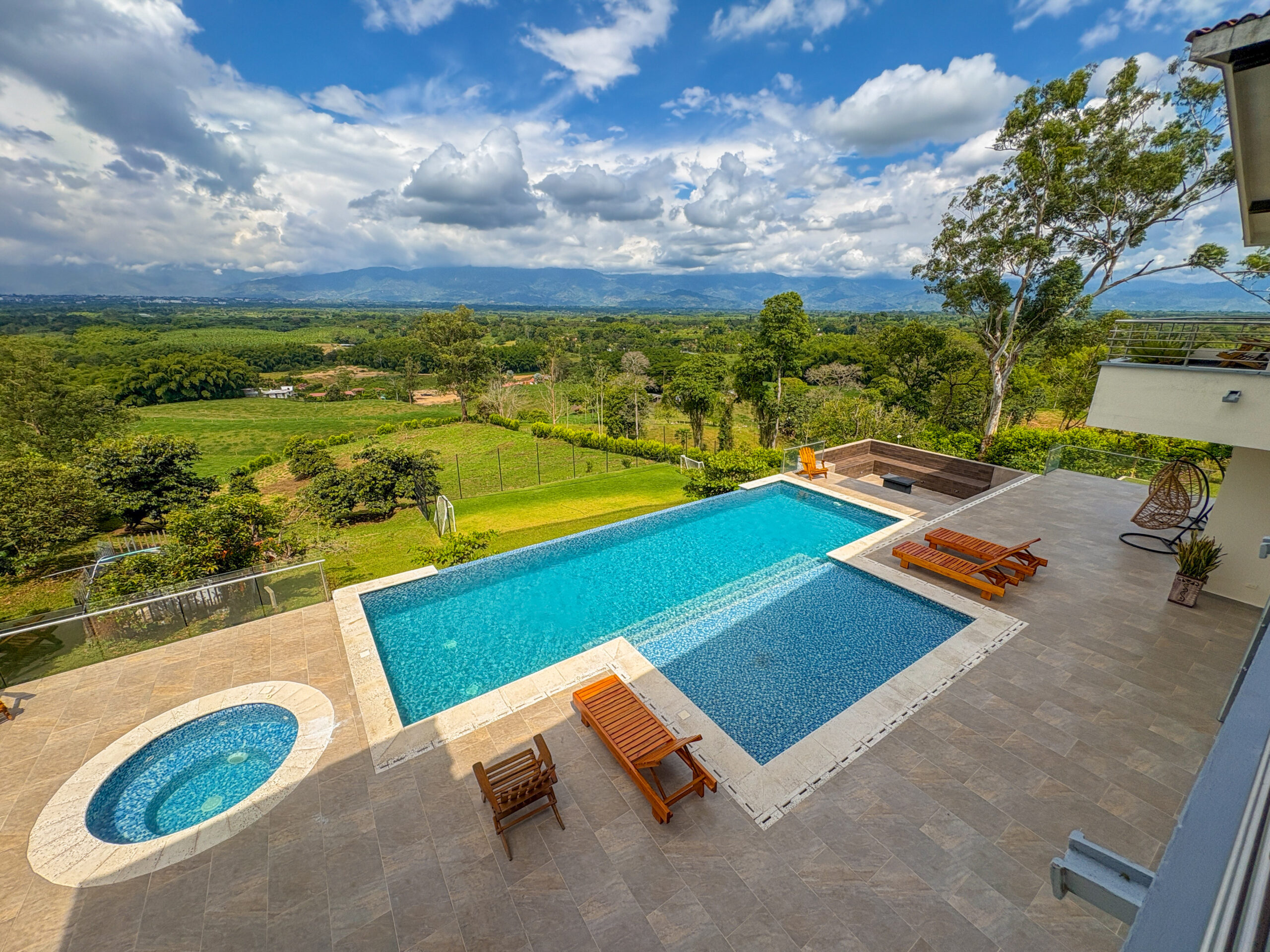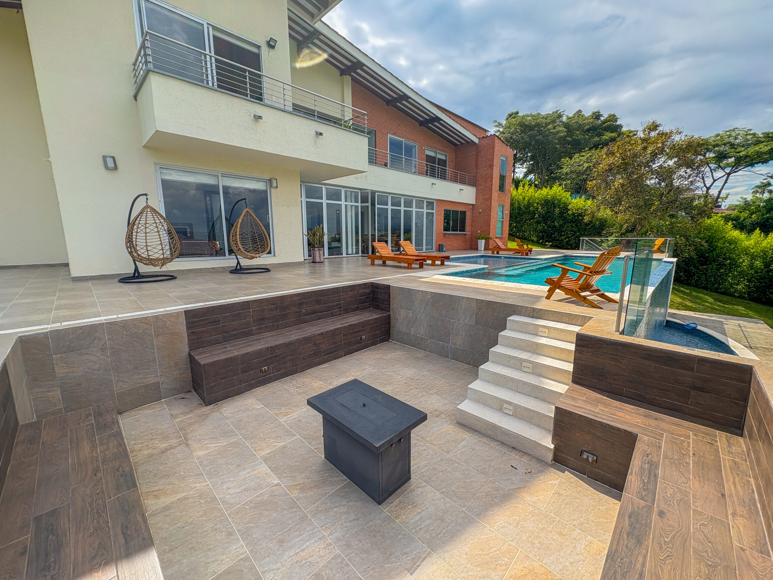 Cuenta con amenidades como zonas sociales, cocina equipada, zona de lavandería, parlante, piscina, jacuzzi, jacuzzi seco con fogatas, juegos de mesa, fogata, cancha de grama natural, sala de tv smartv, wifi de alta velocidad y parqueaderos, cámaras de seguridad en el exterior