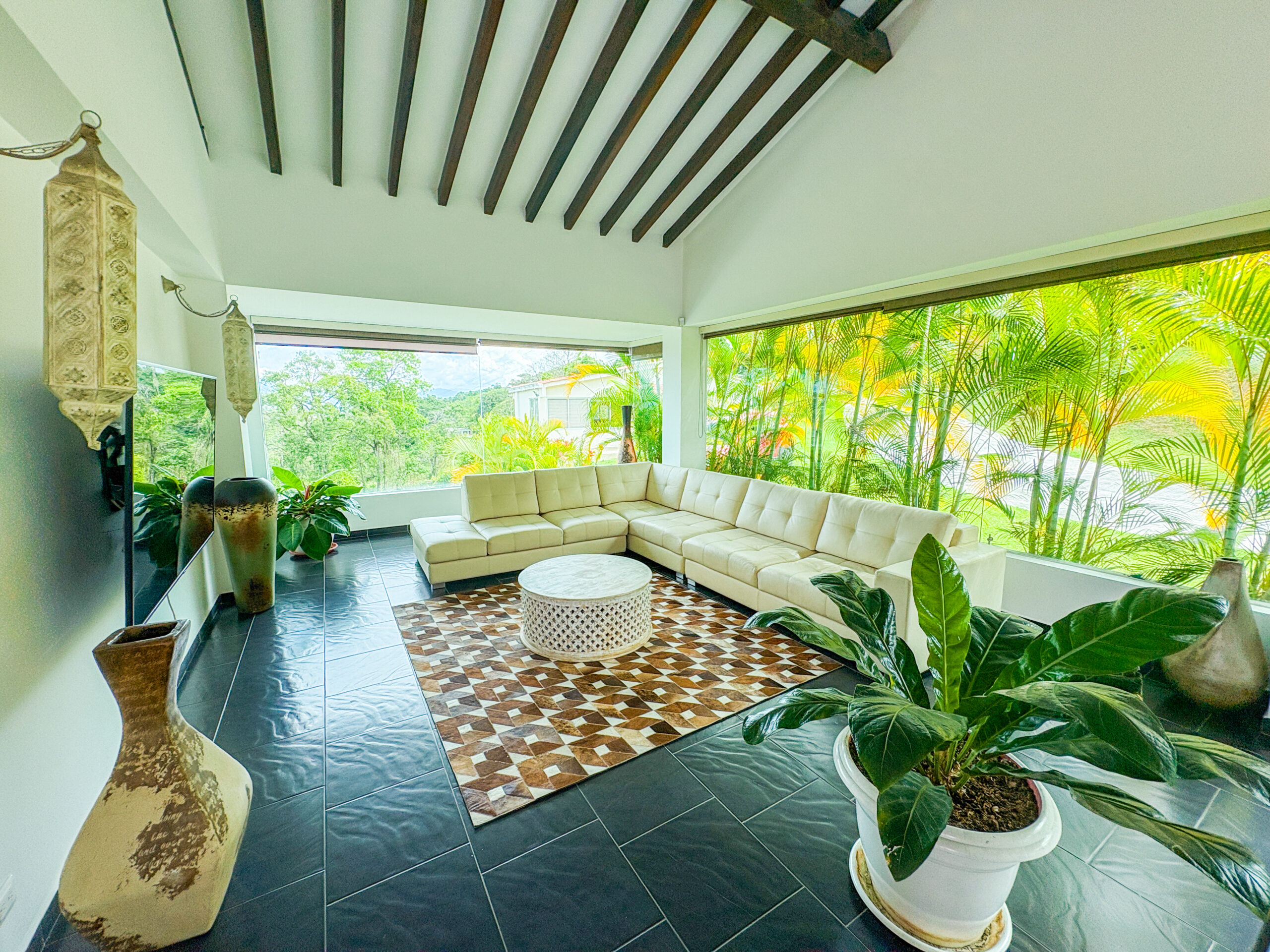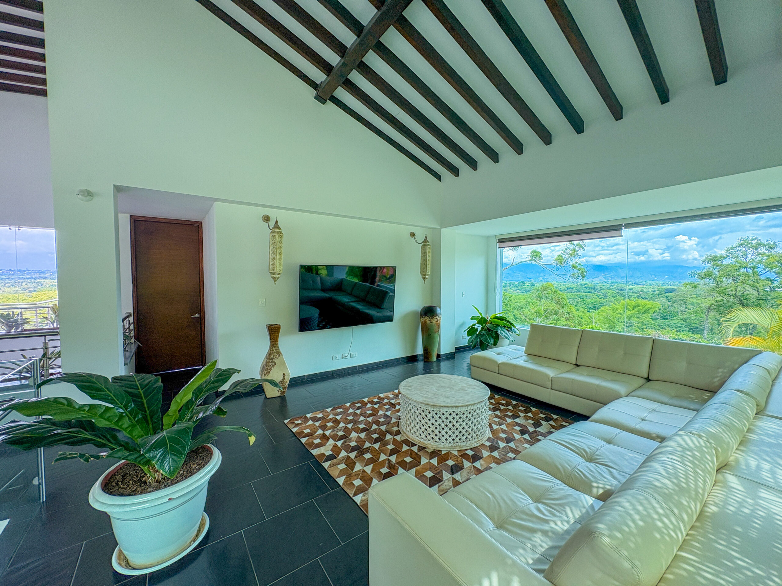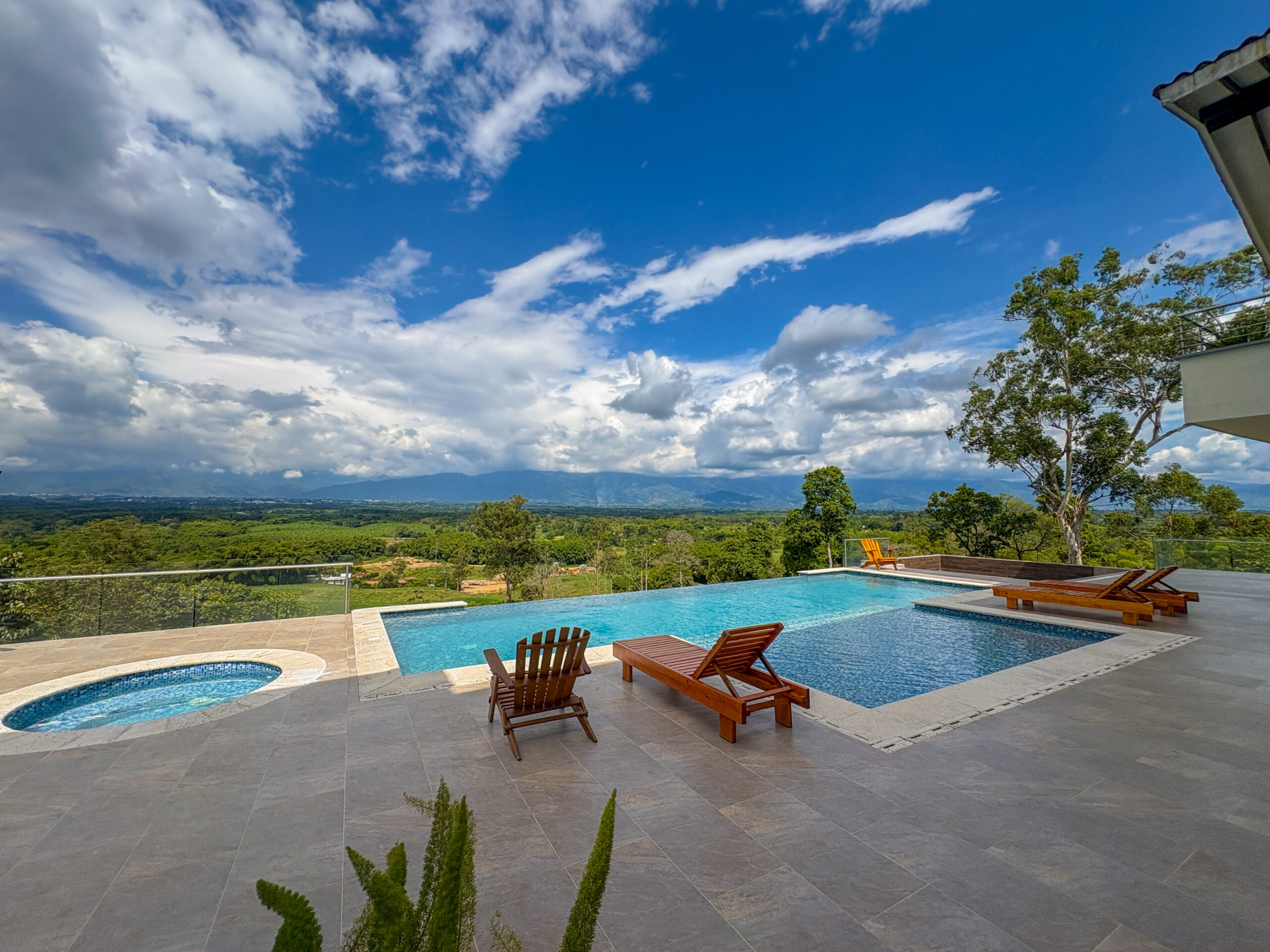 Cuenta con amenidades como zonas sociales, cocina equipada, zona de lavandería, parlante, piscina, jacuzzi, jacuzzi seco con fogatas, juegos de mesa, fogata, cancha de grama natural, sala de tv smartv, wifi de alta velocidad y parqueaderos, cámaras de seguridad en el exterior