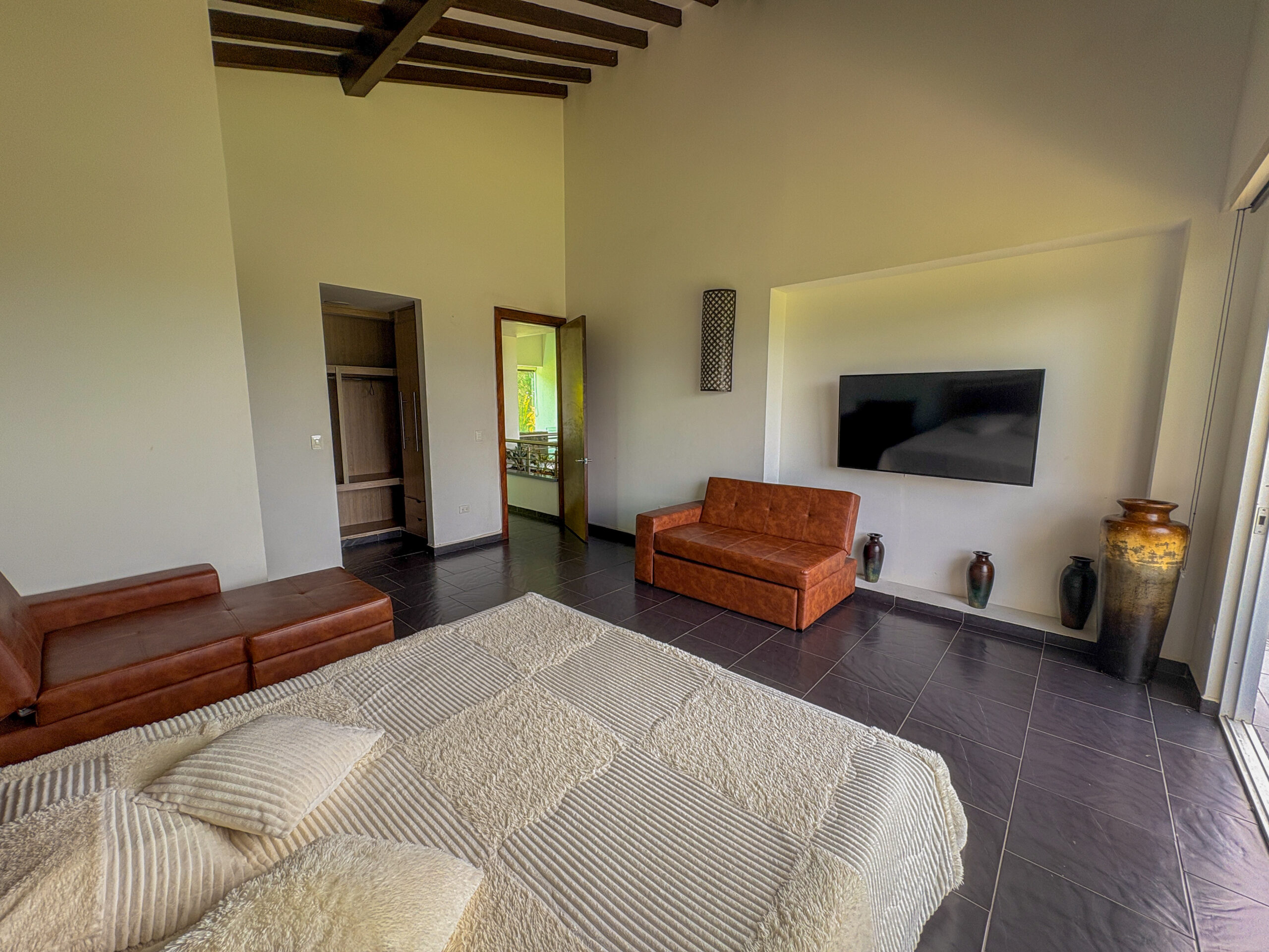 Habitación 5: Cama cama queen, sofa cama doble, aire acondicionado, tv, baño privado, closet
