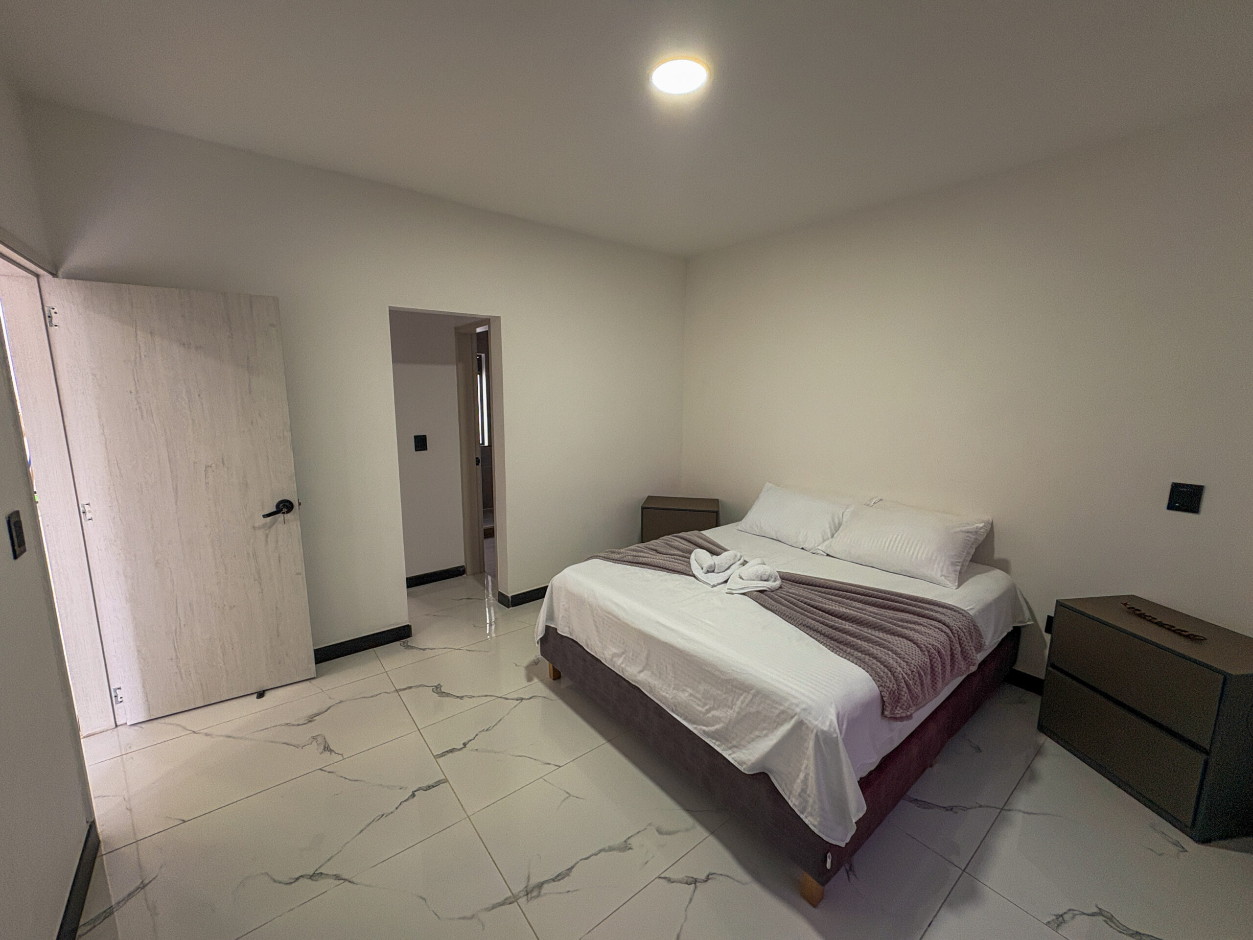 Habitación 1: Cama queen, baño privado, ventilador y vestier