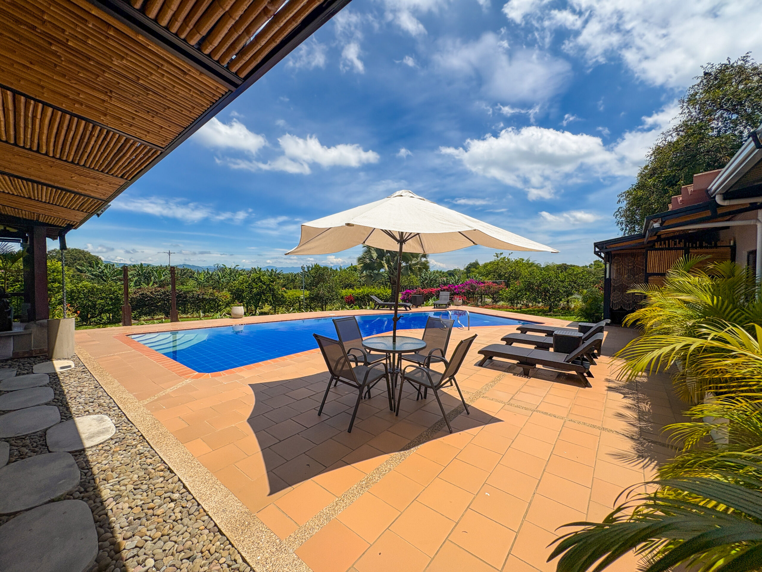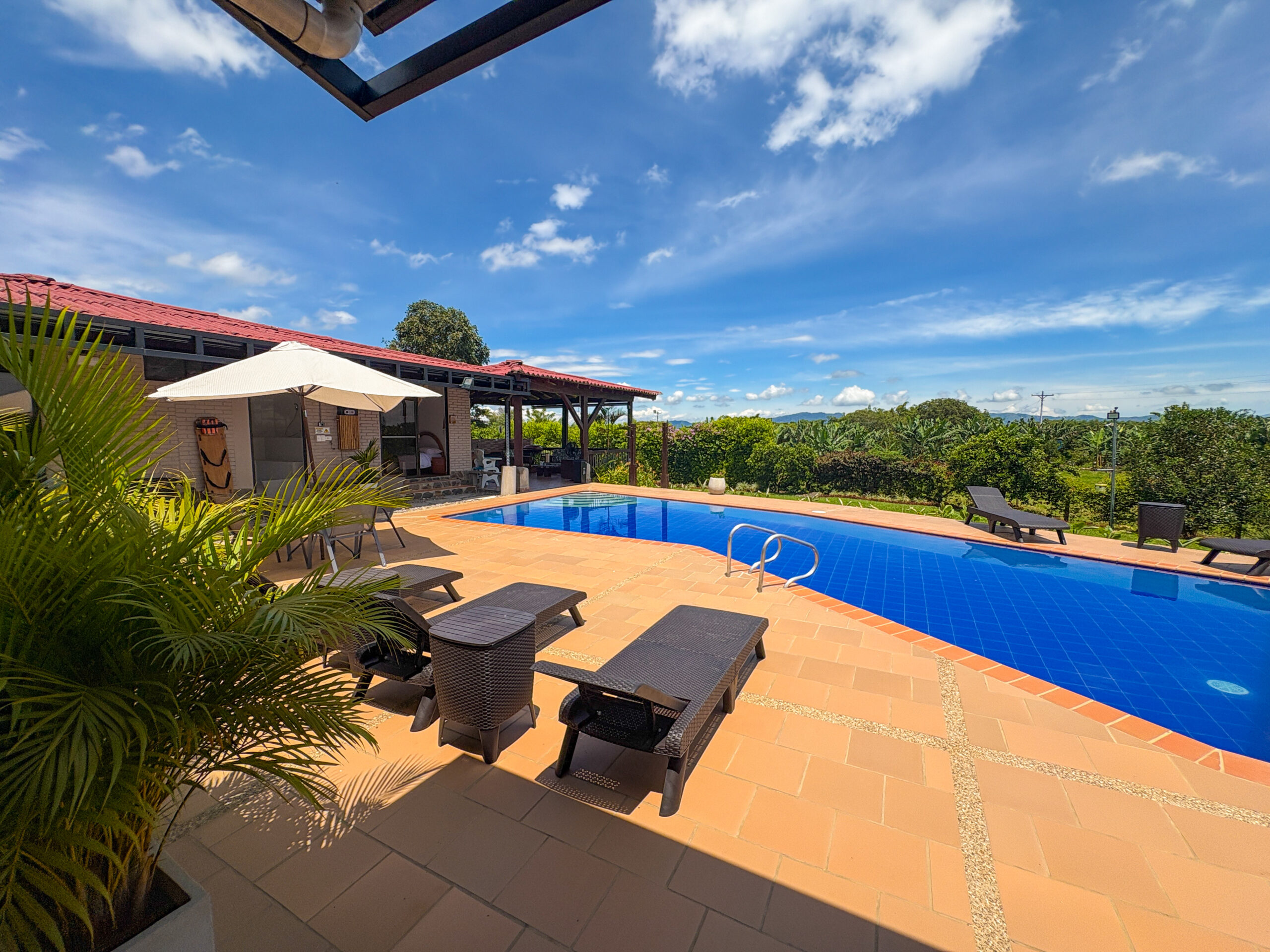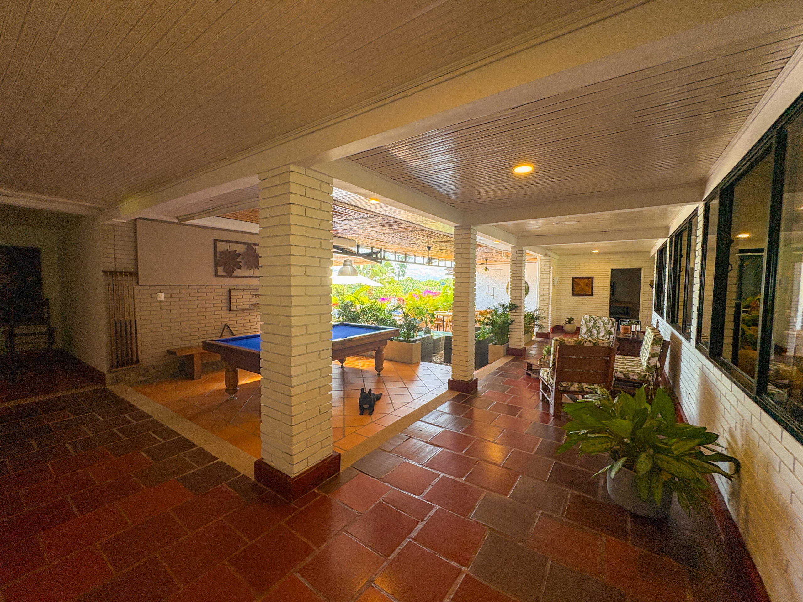 Cuenta con amenidades como zonas sociales, piscina, salón social, juegos de mesa, zona de hamacas , fogata, wifi, baños sociales, sala de tv smartv, turco, mesa de billar, cámaras de seguridad en el exterior, seguridad 24/7, parqueaderos y a 2 kilometros de la propiedad hay un rio