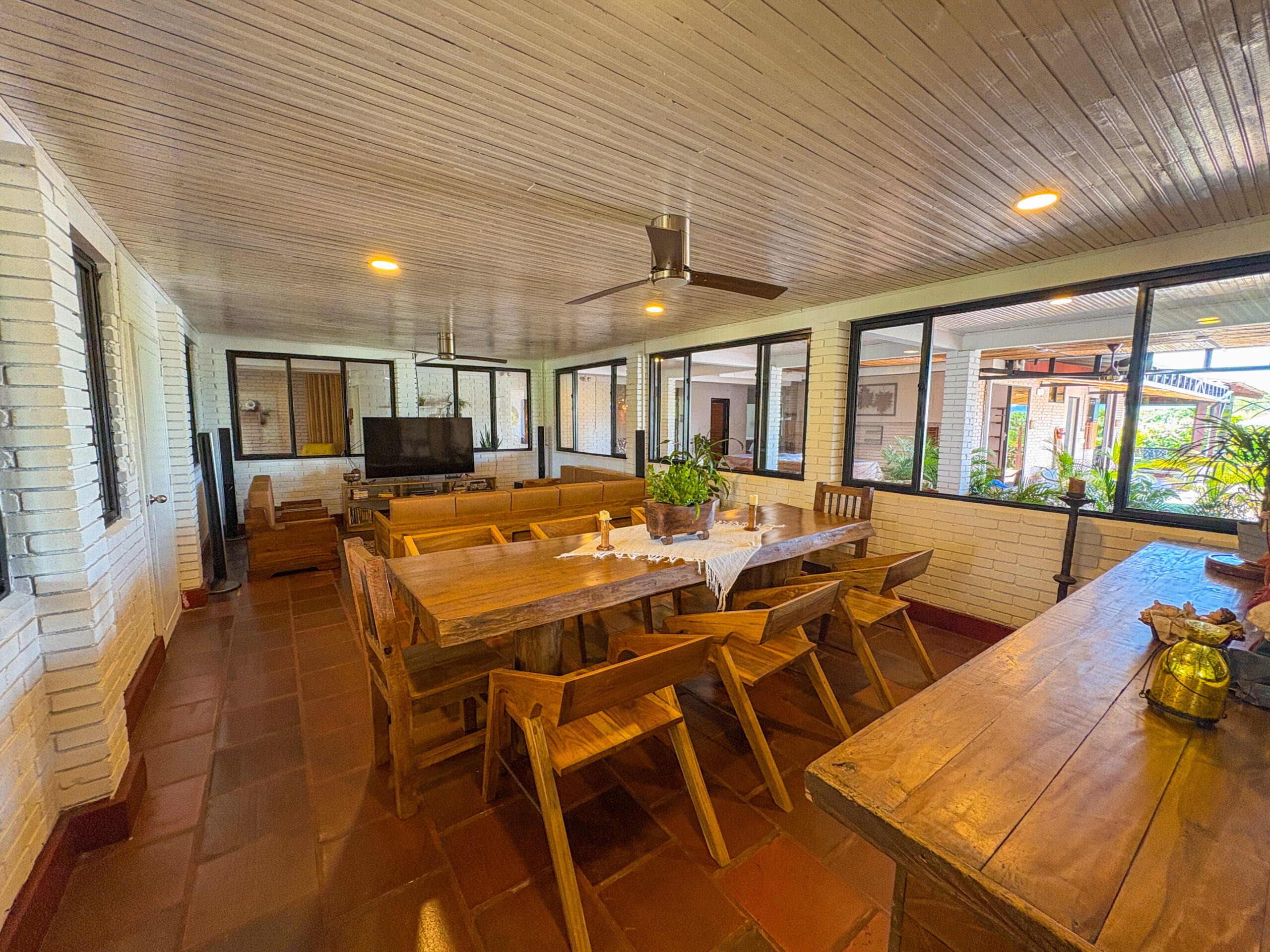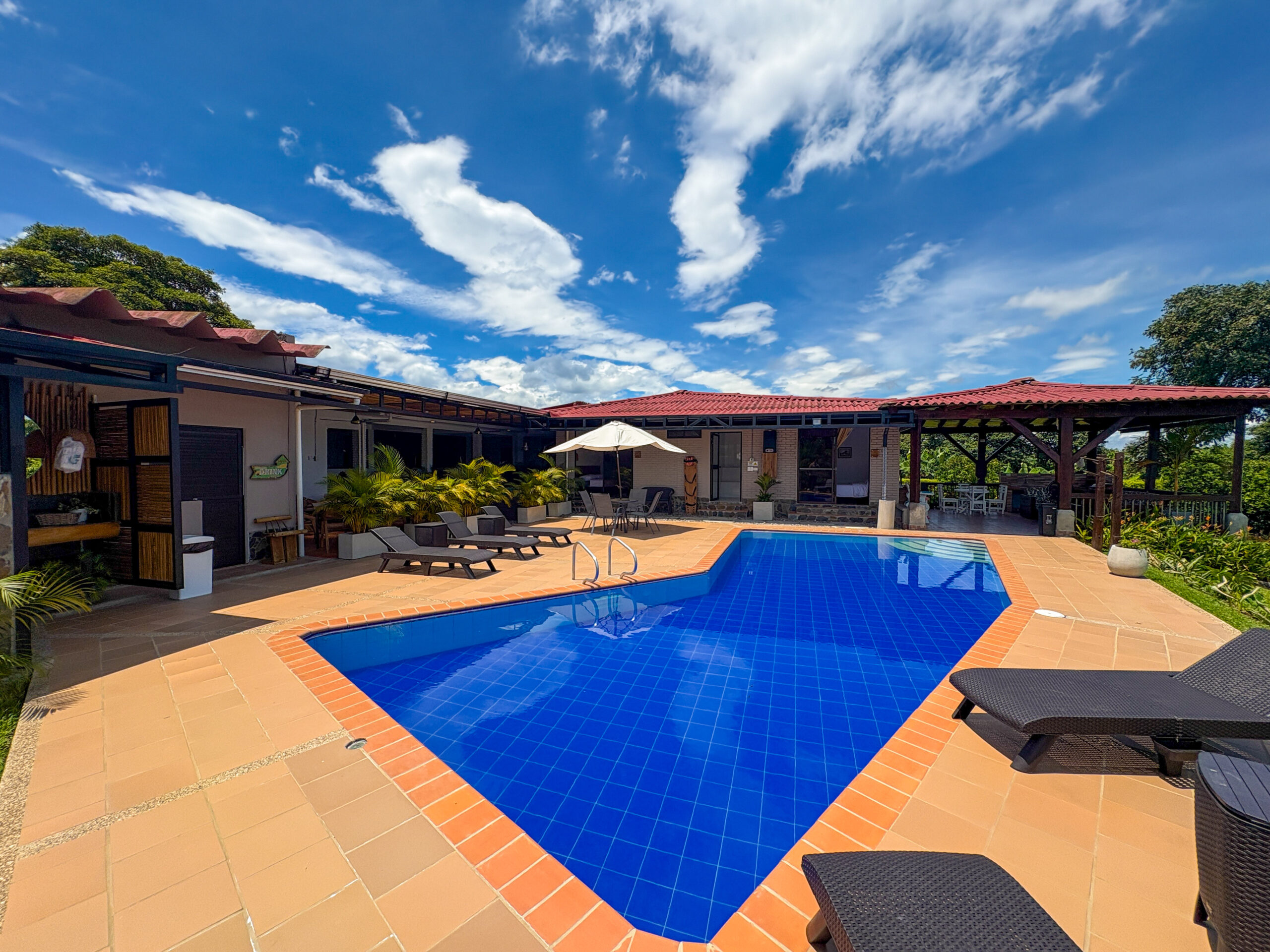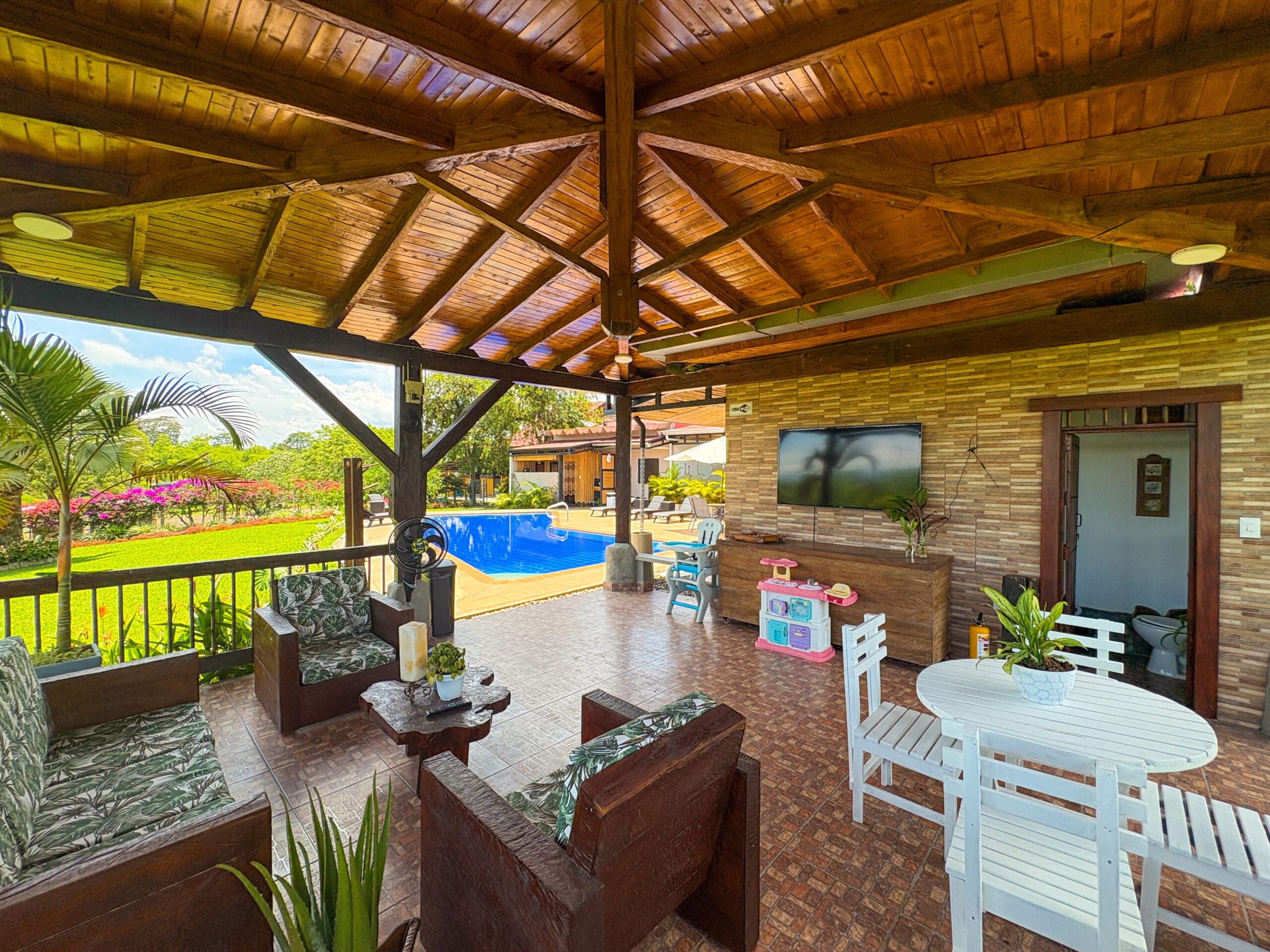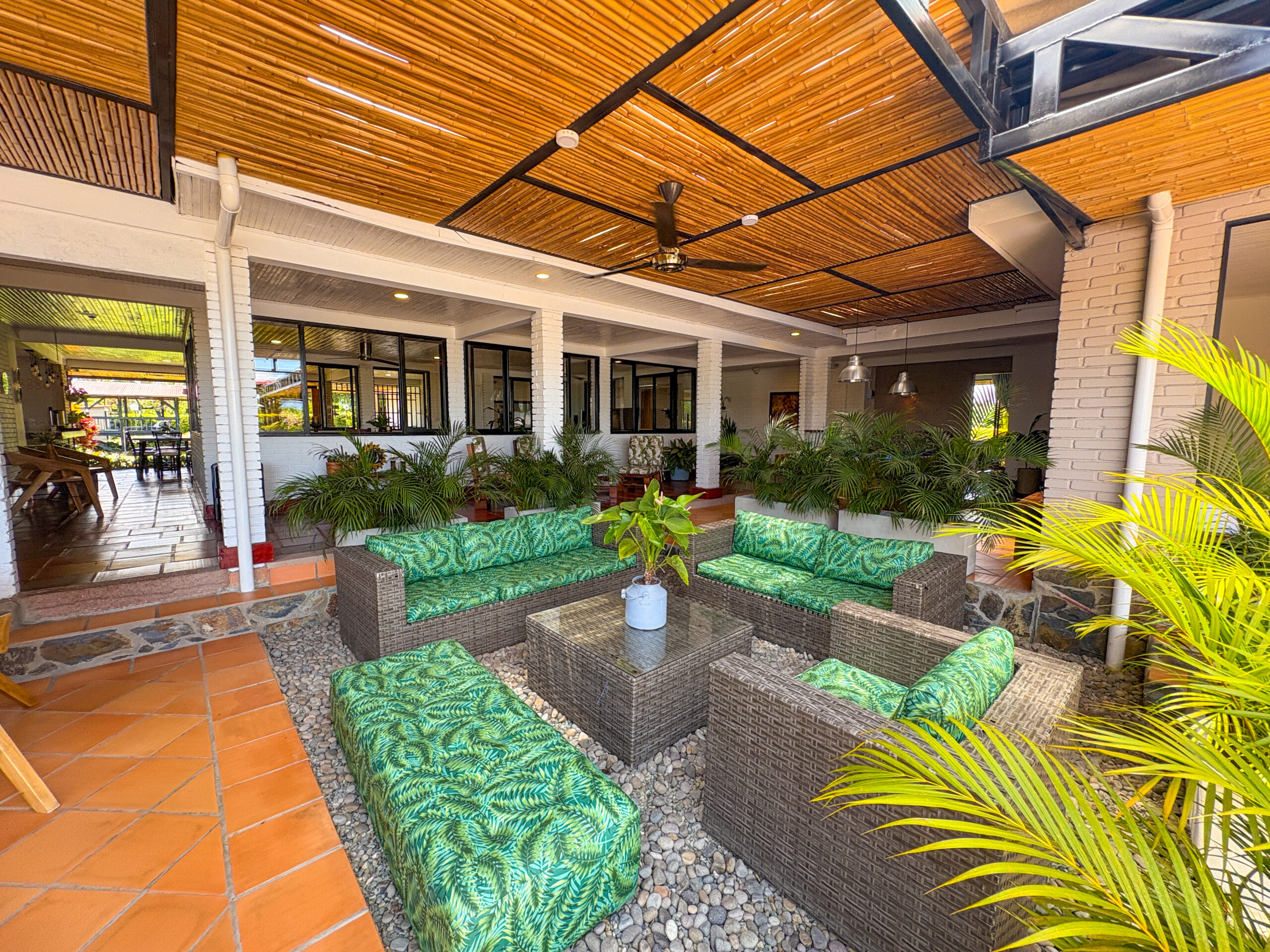 Cuenta con amenidades como zonas sociales, piscina, salón social, juegos de mesa, zona de hamacas , fogata, wifi, baños sociales, sala de tv smartv, turco, mesa de billar, cámaras de seguridad en el exterior, seguridad 24/7, parqueaderos y a 2 kilometros de la propiedad hay un rio
