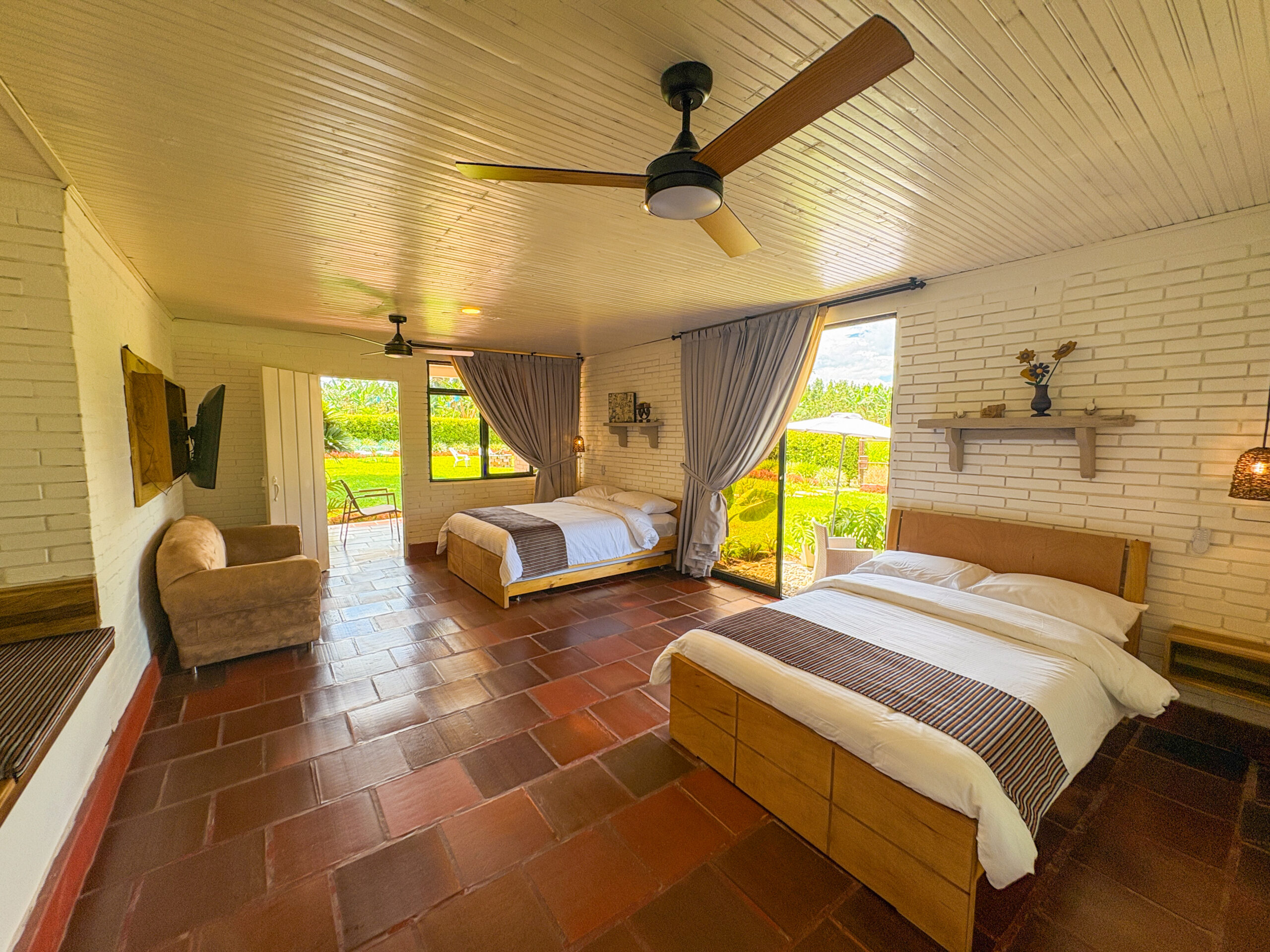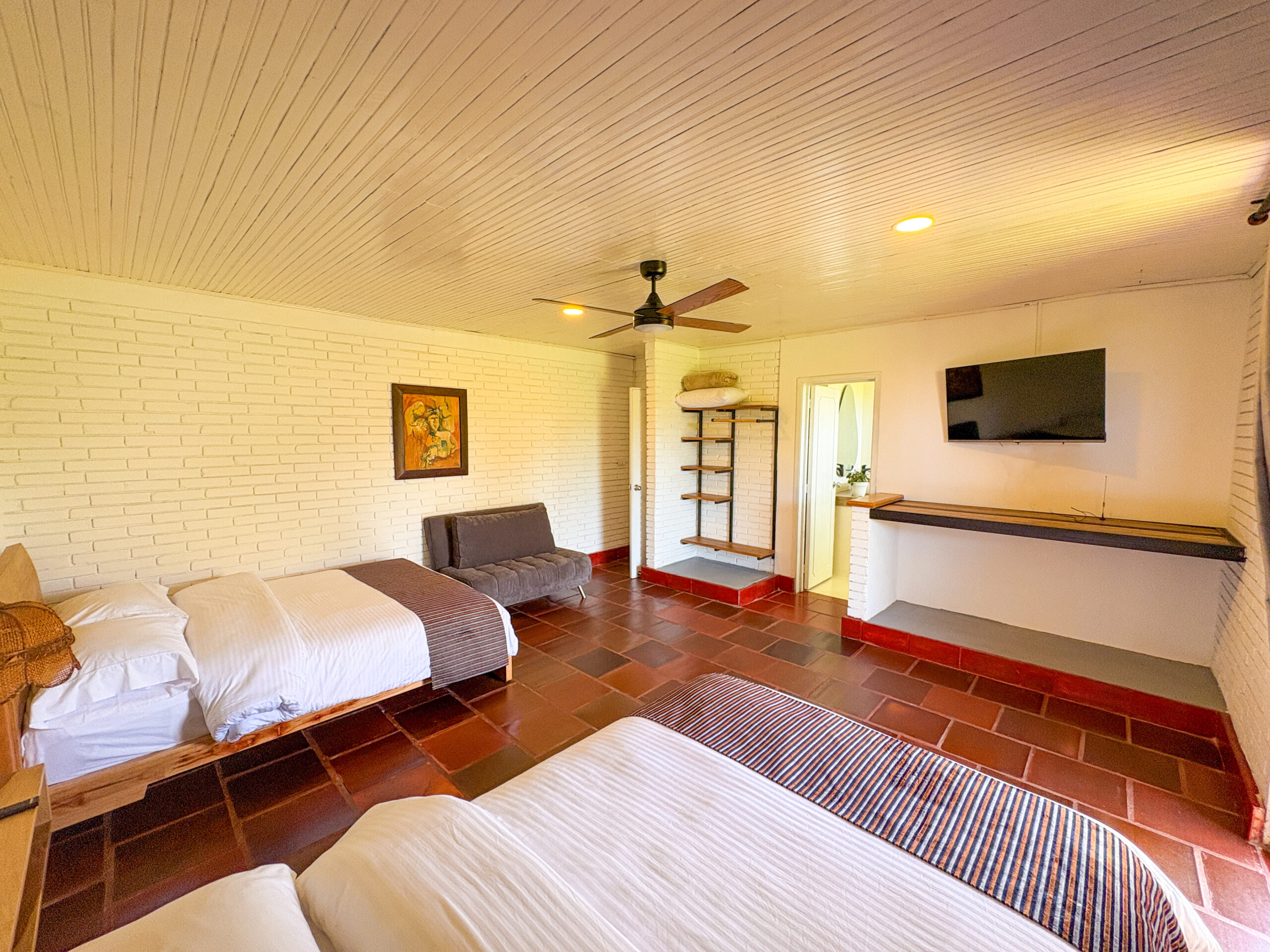 Habitación 7: Cama doble, nido sencillo, closet, baño privado, tv, ventilación