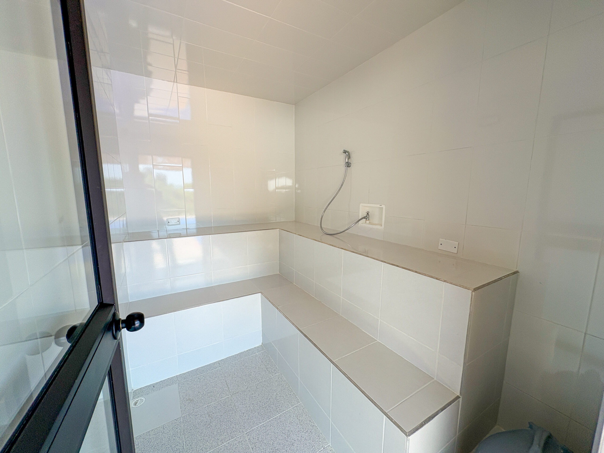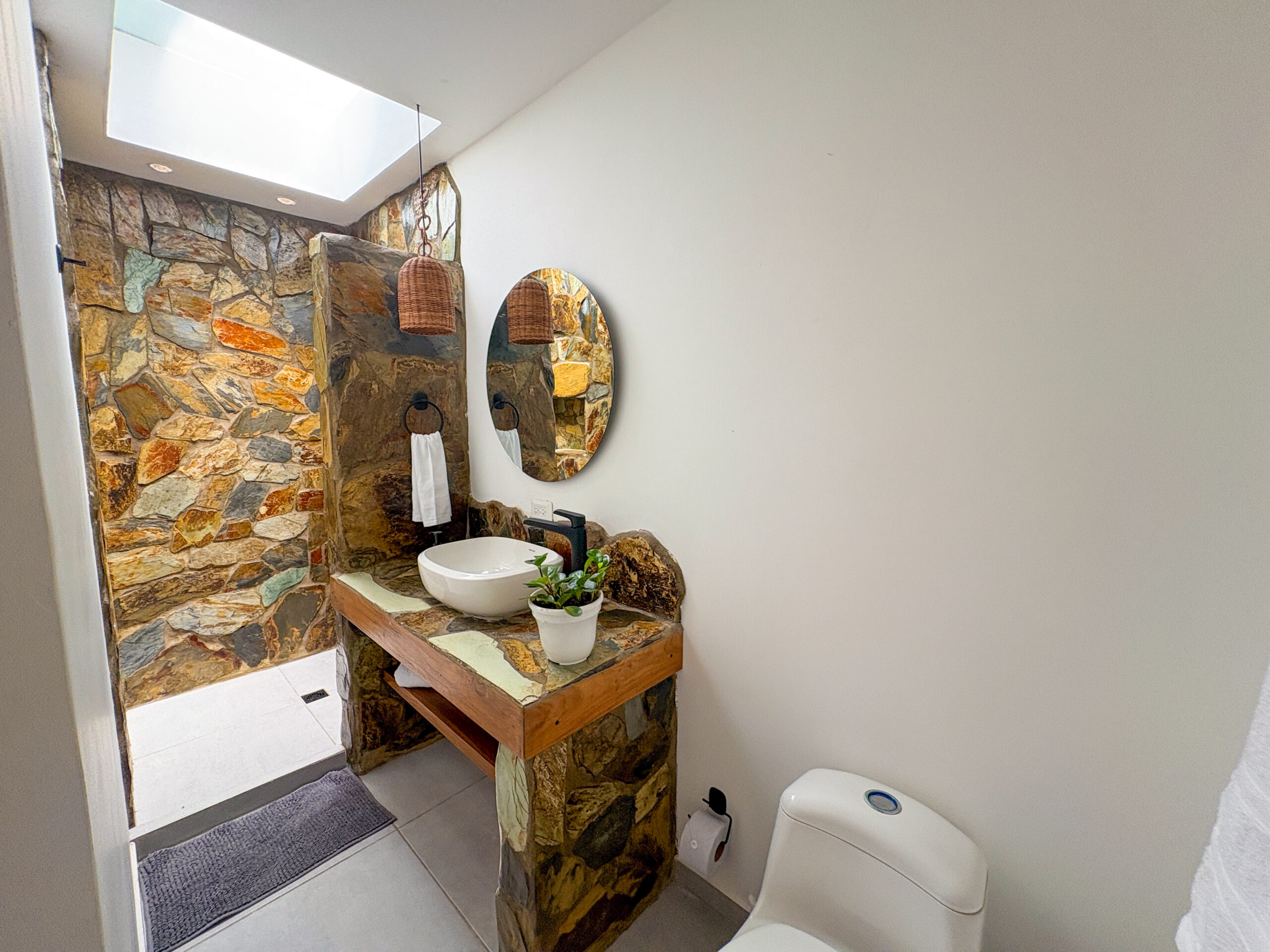 Habitación 3: Cama semi doble, cama sencilla, 1 nido sencillo, closet, baño privado, tv y ventilación