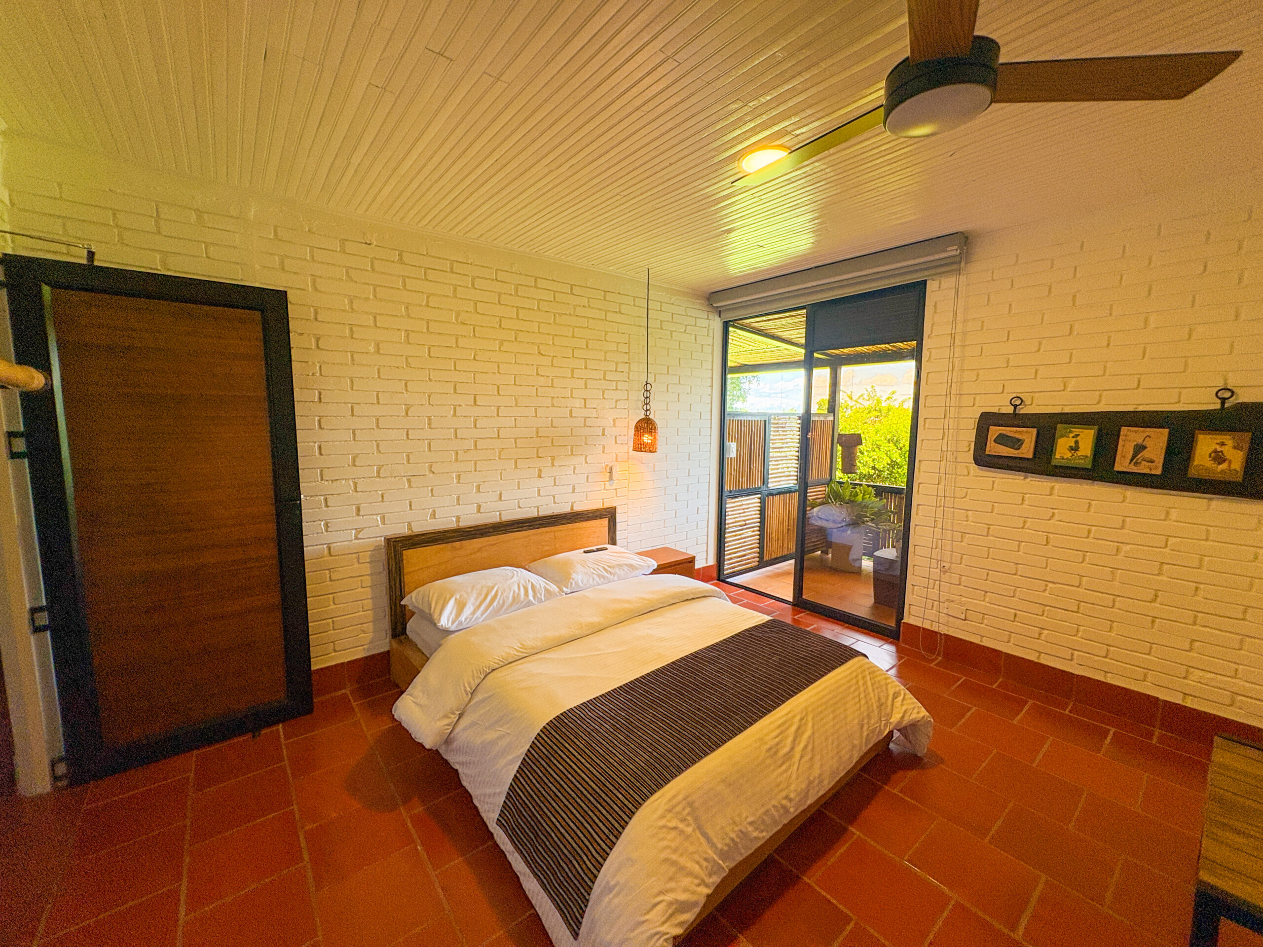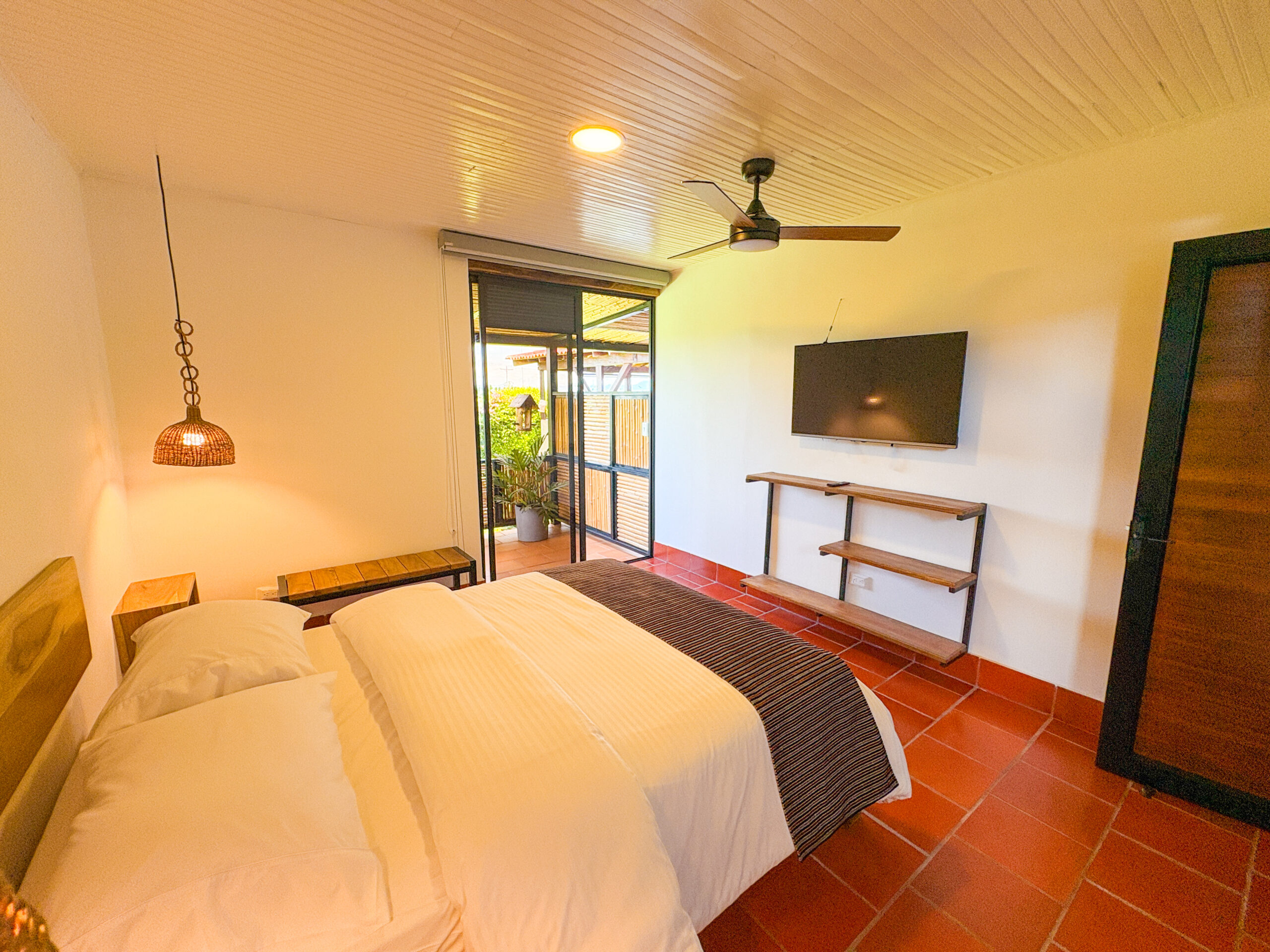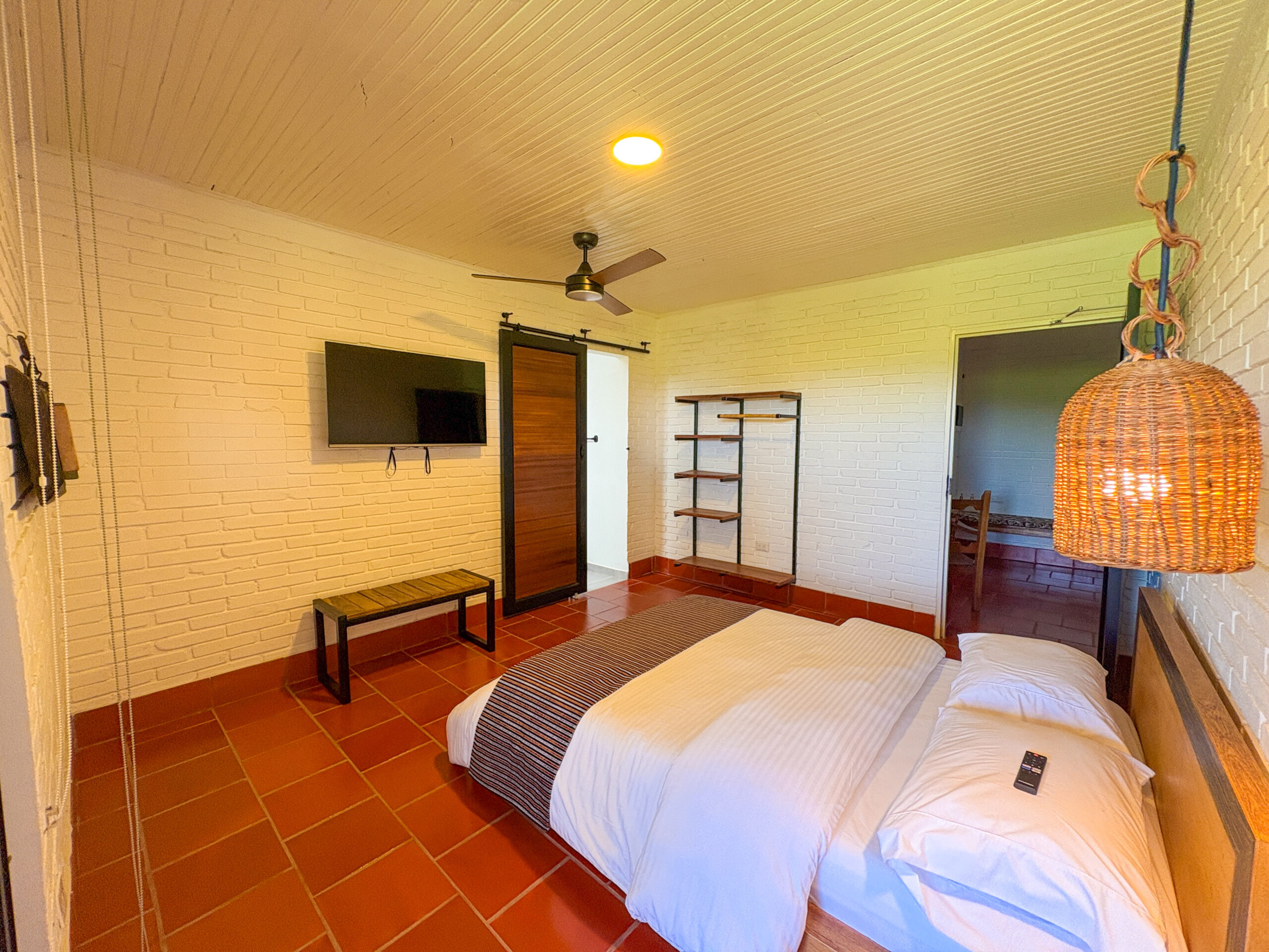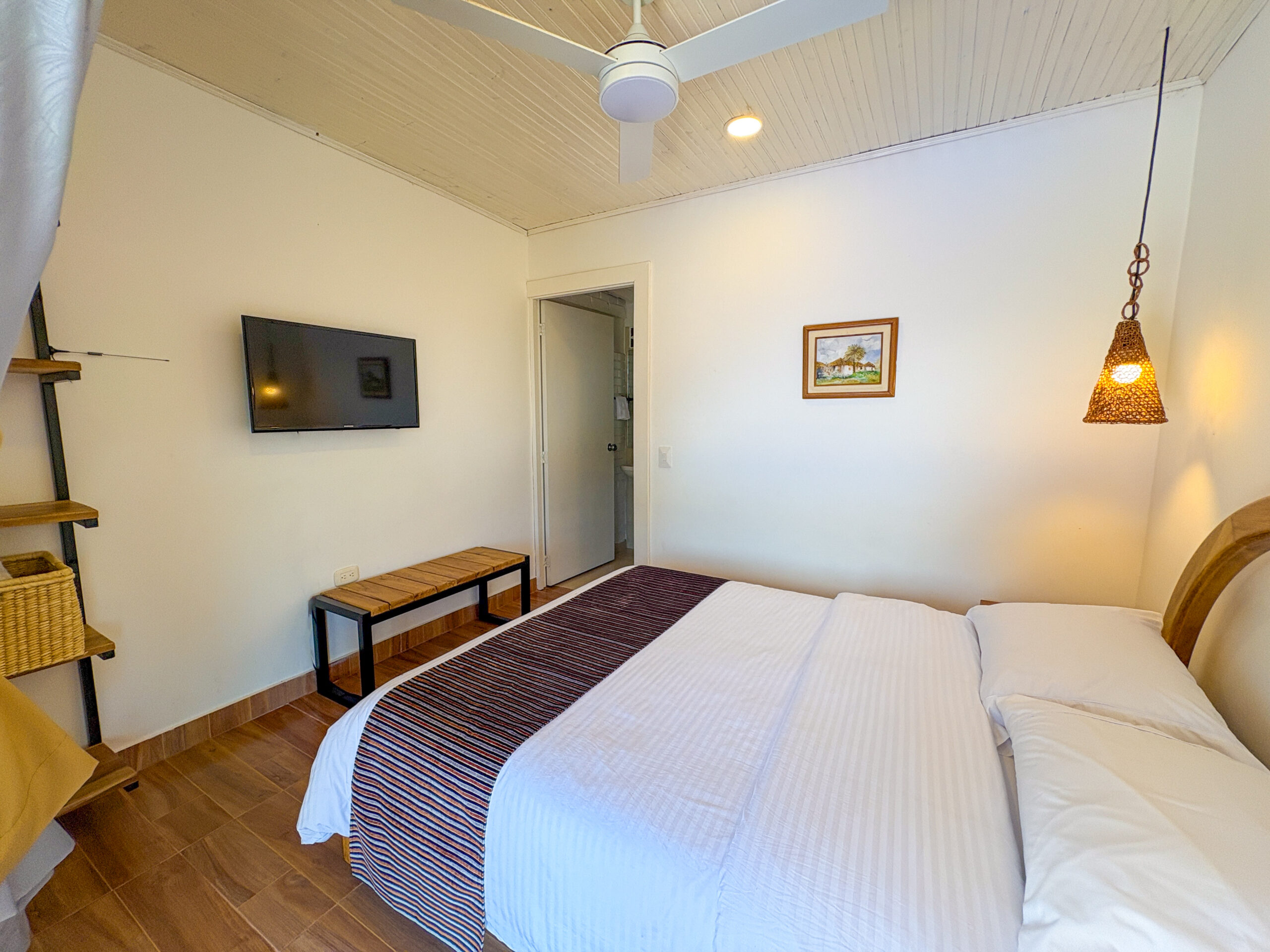 Habitación 5: Cama doble, closet, baño privado, tv, ventilación y sala exterior