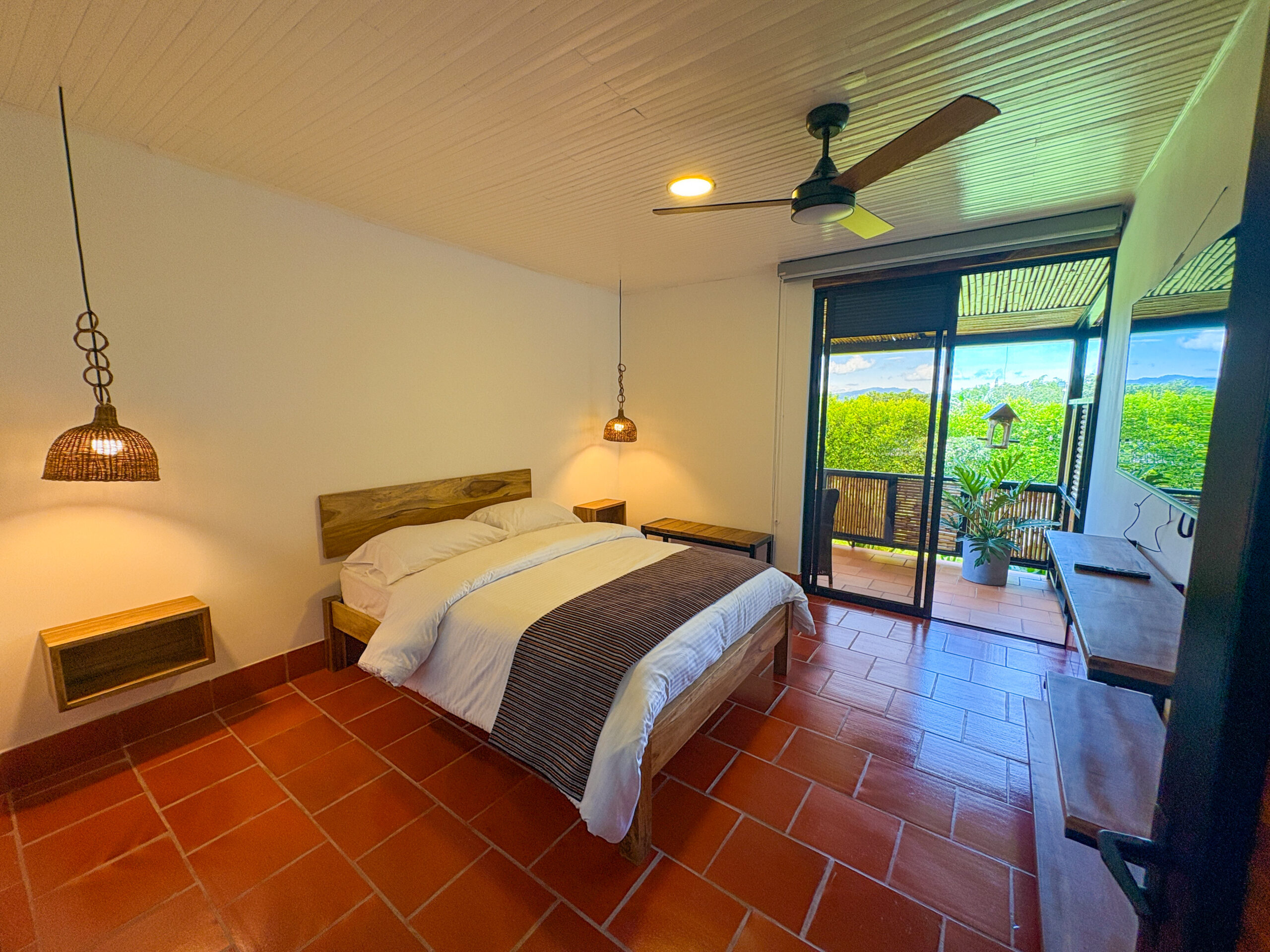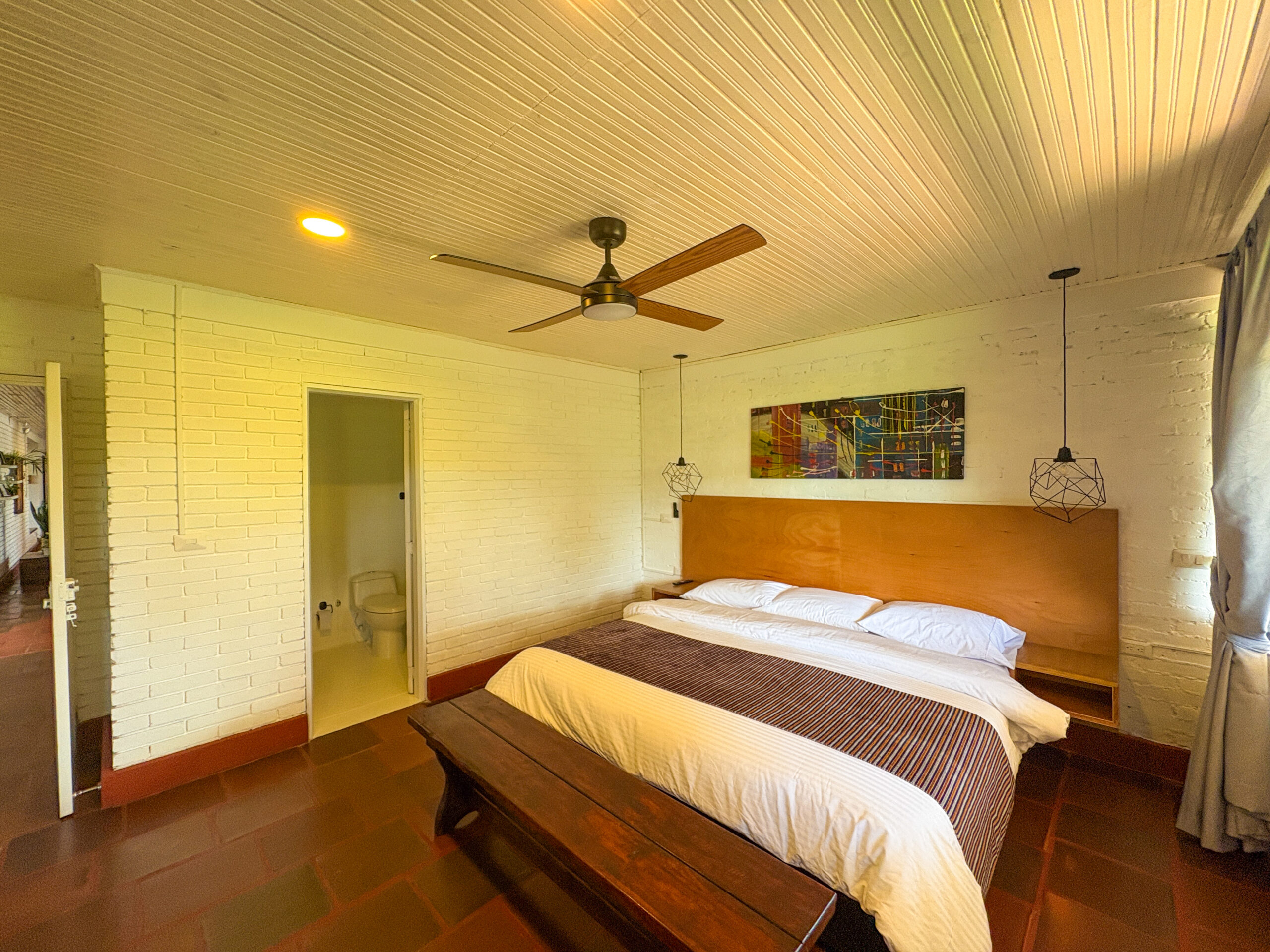 Habitación 1: Cama king, balcón, closet, baño privado, tv y ventilación