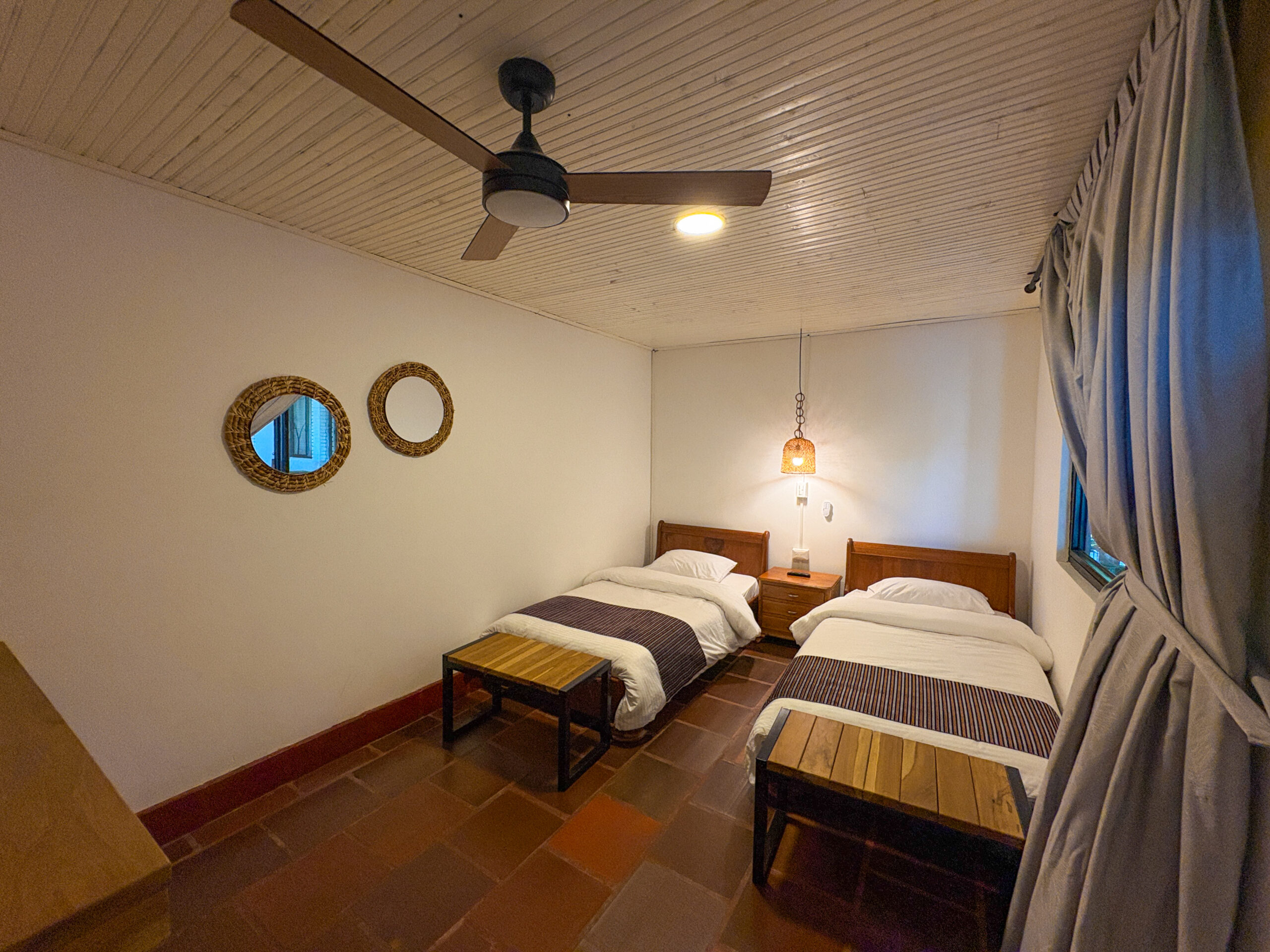 Habitación 9: Dos camas sencillas, closet, baño privado, tv y ventilación