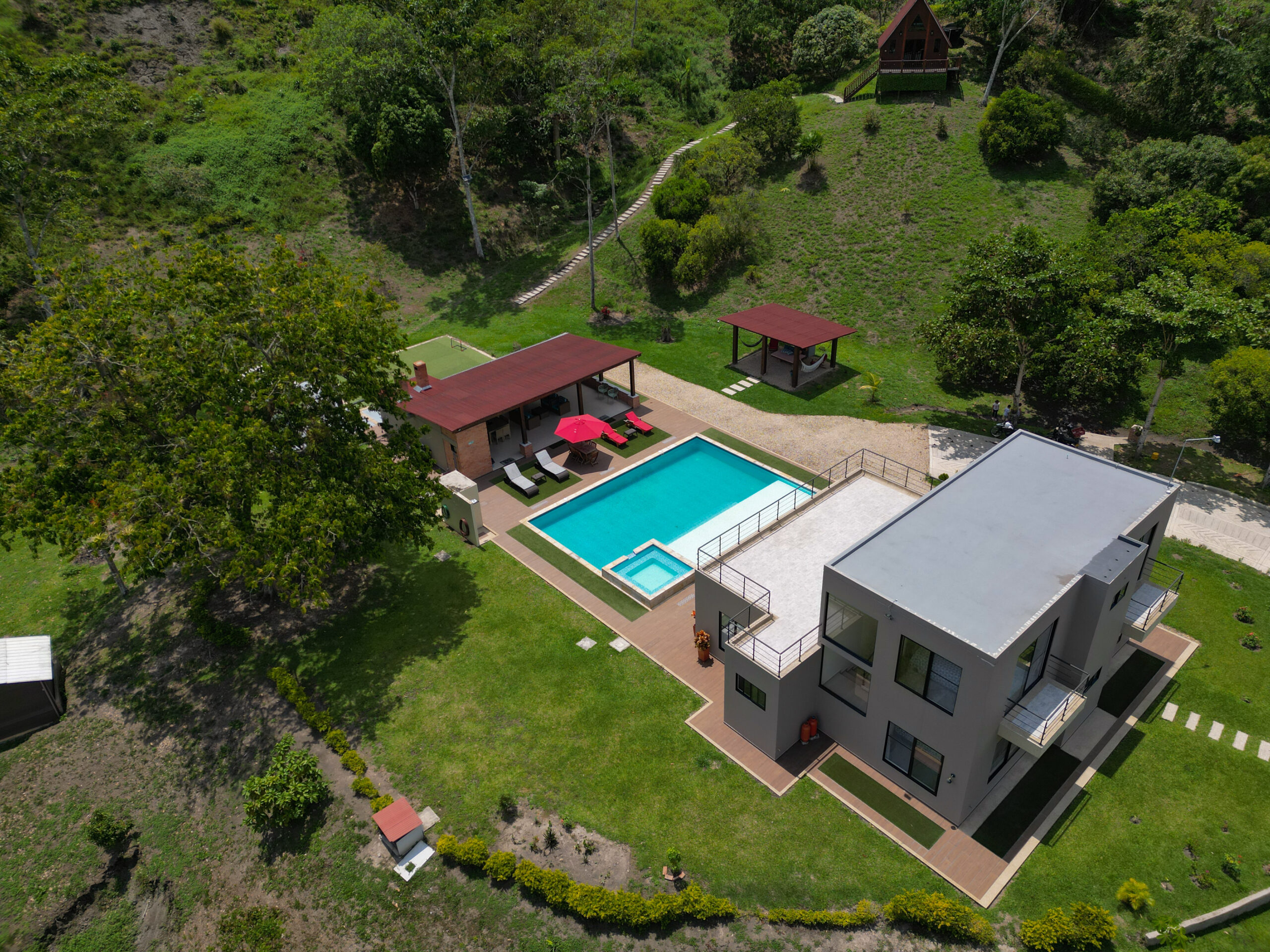 4 habitaciones y una cabaña distribuidas así: