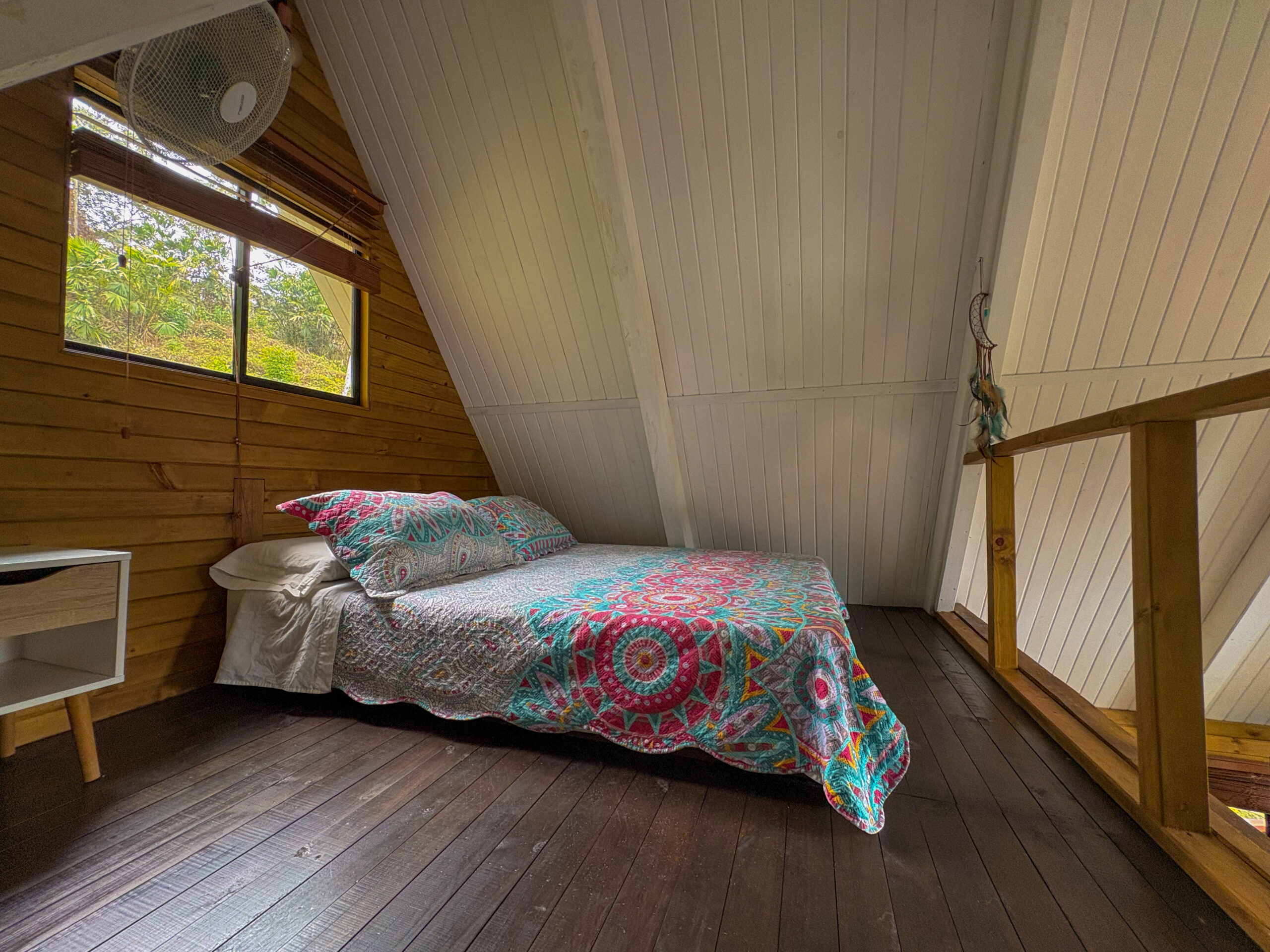 Habitación 4: Cama doble, balcón y ventilador