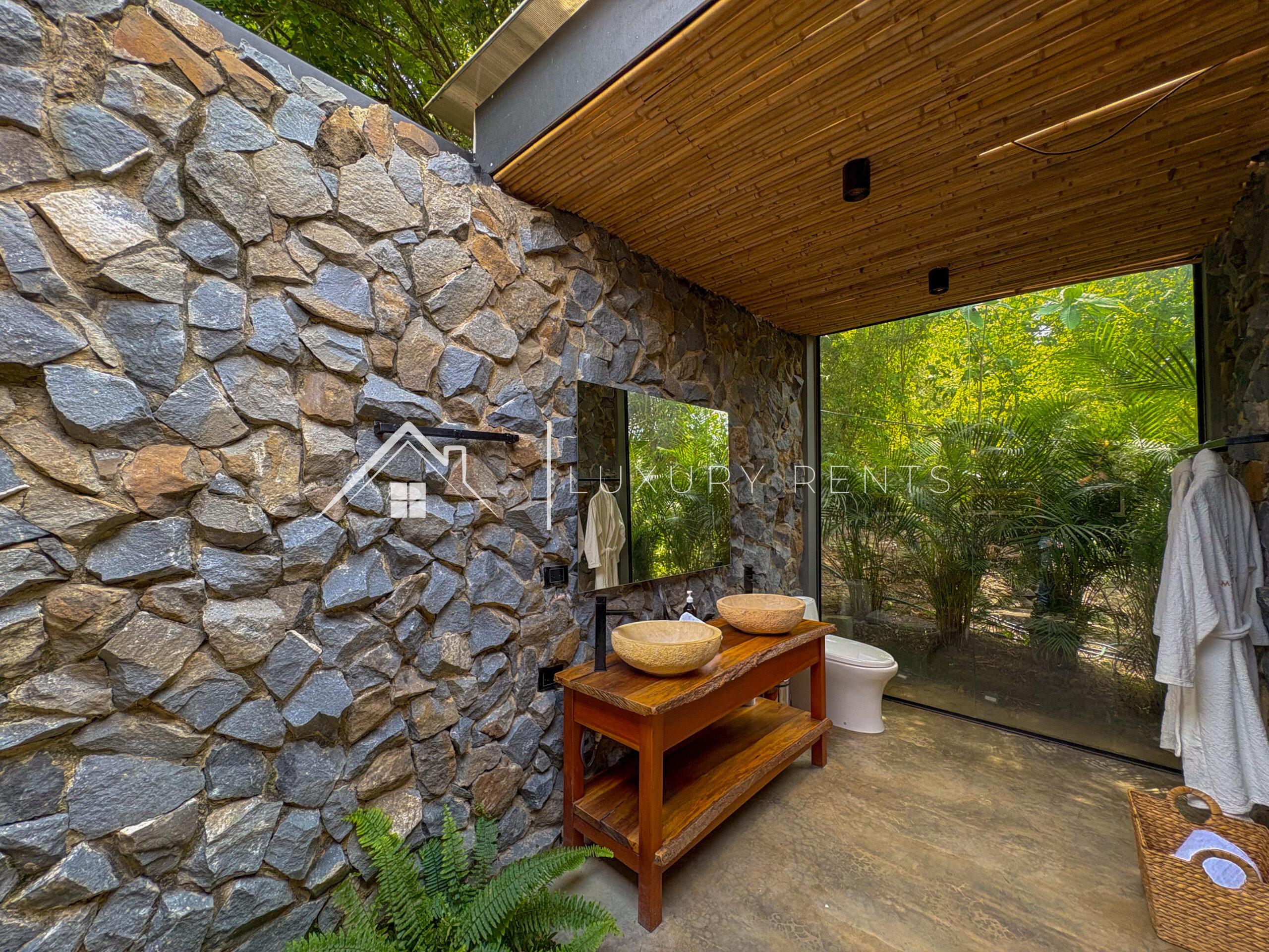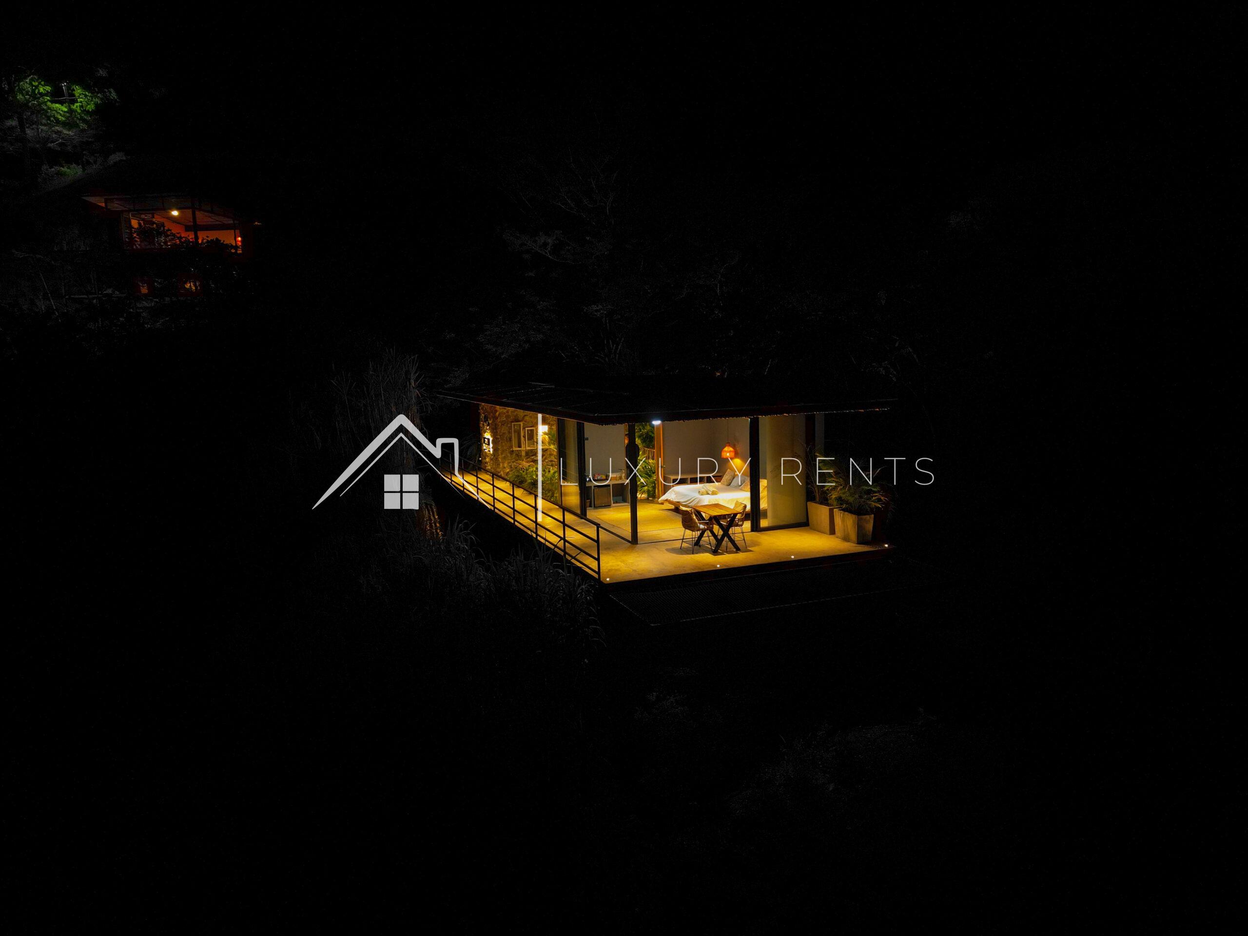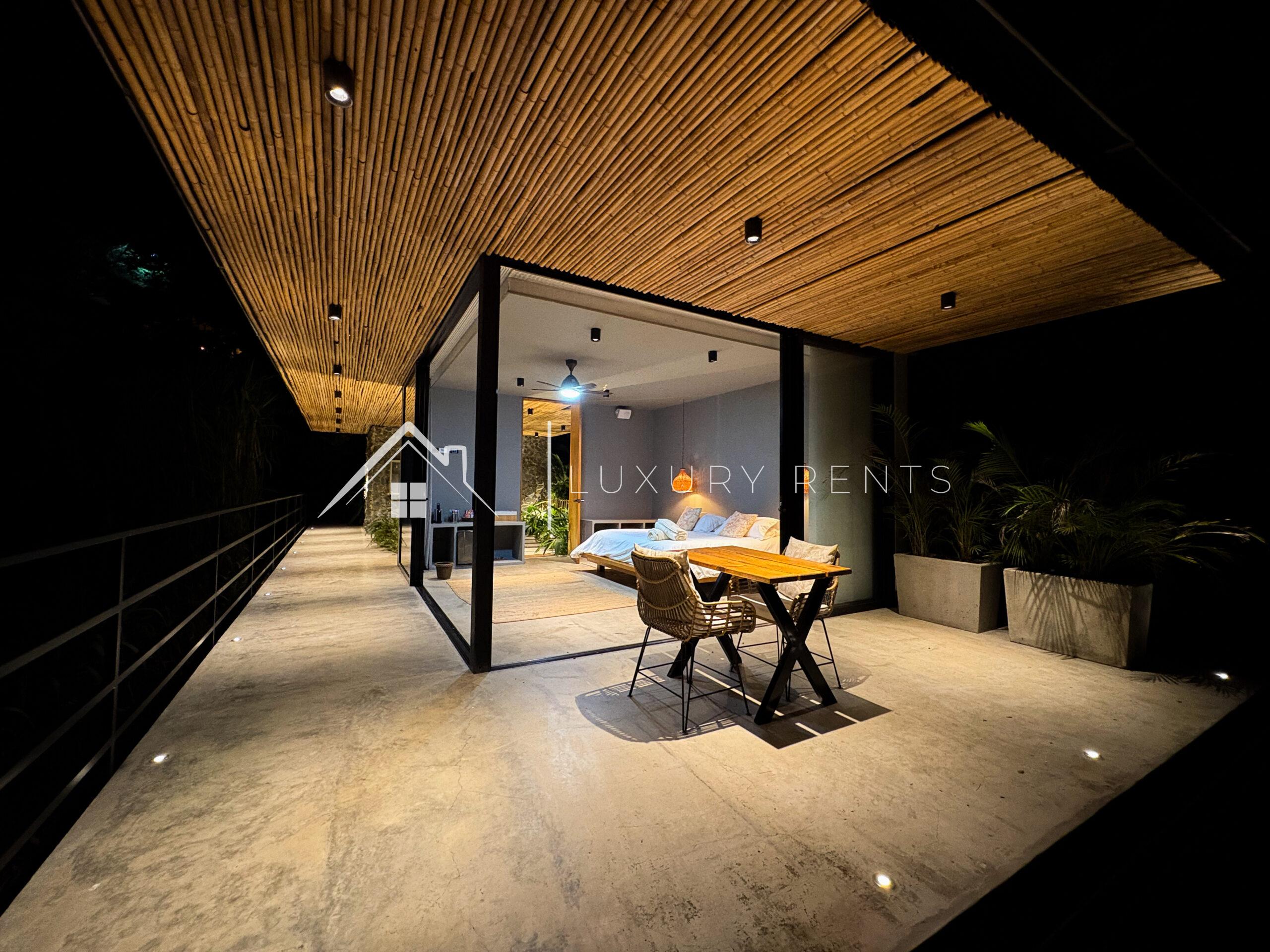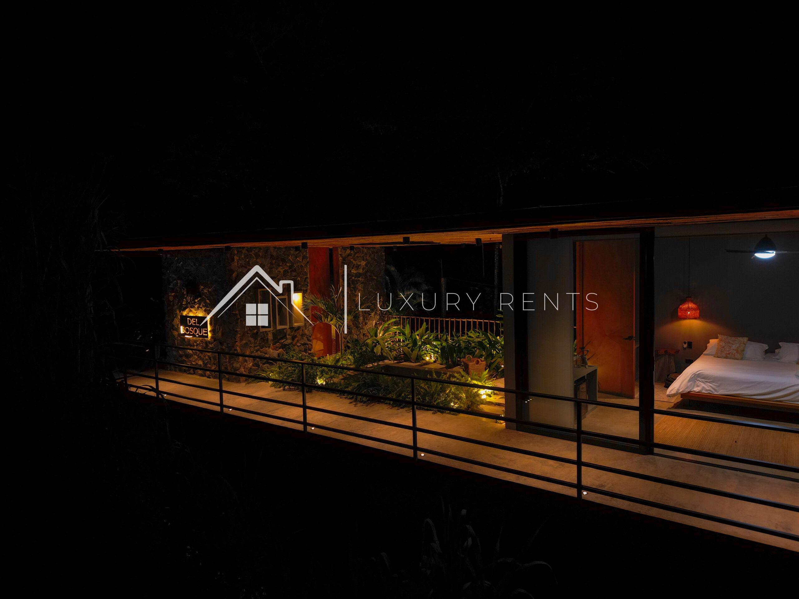 Cuenta con amenidades como malla catamarán 360, jacuzzi privado con calefacción, mini bar (cobro por consumo), wifi, sistema de sonido, desayuno incluido, transporte en buggy desde el parqueadero, parqueaderos privados, zonas de hamacas