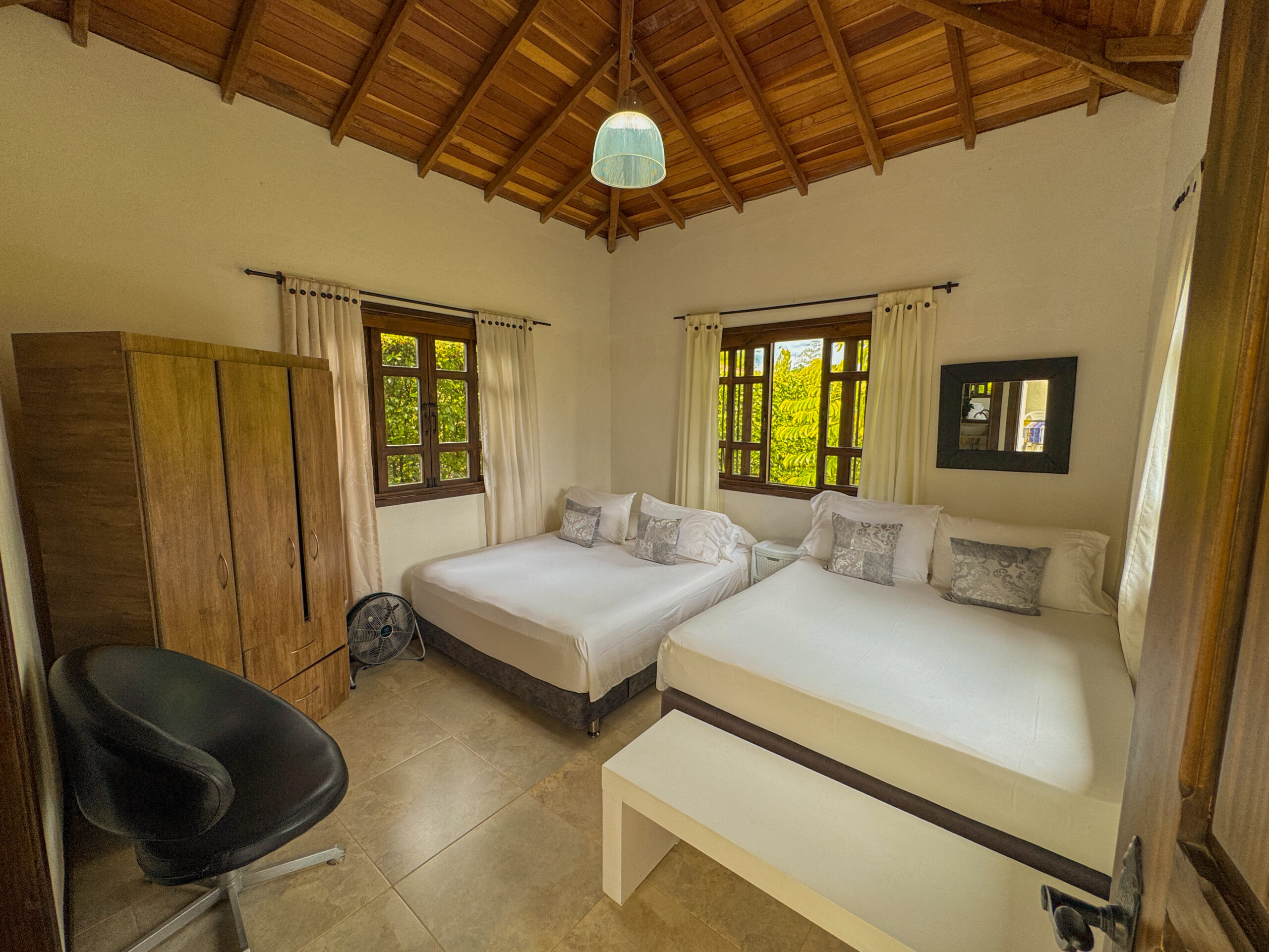Habitación 3: Cama Queen, Cama doble, baño tipo Spa y ventilación